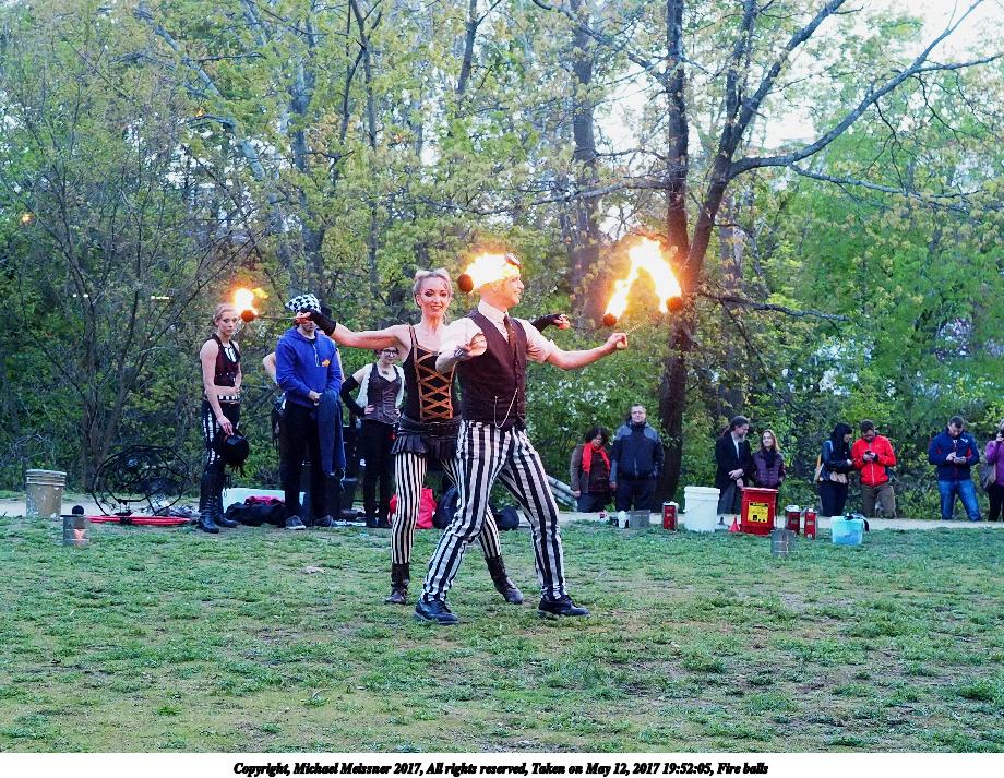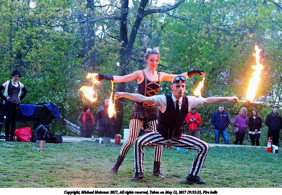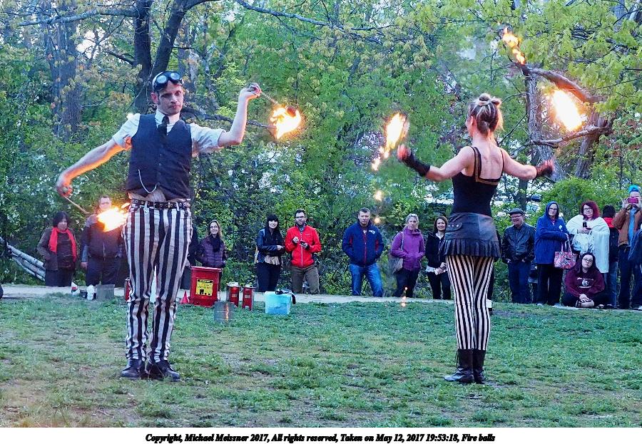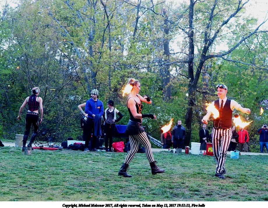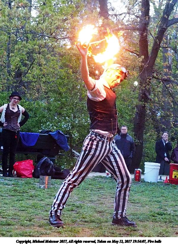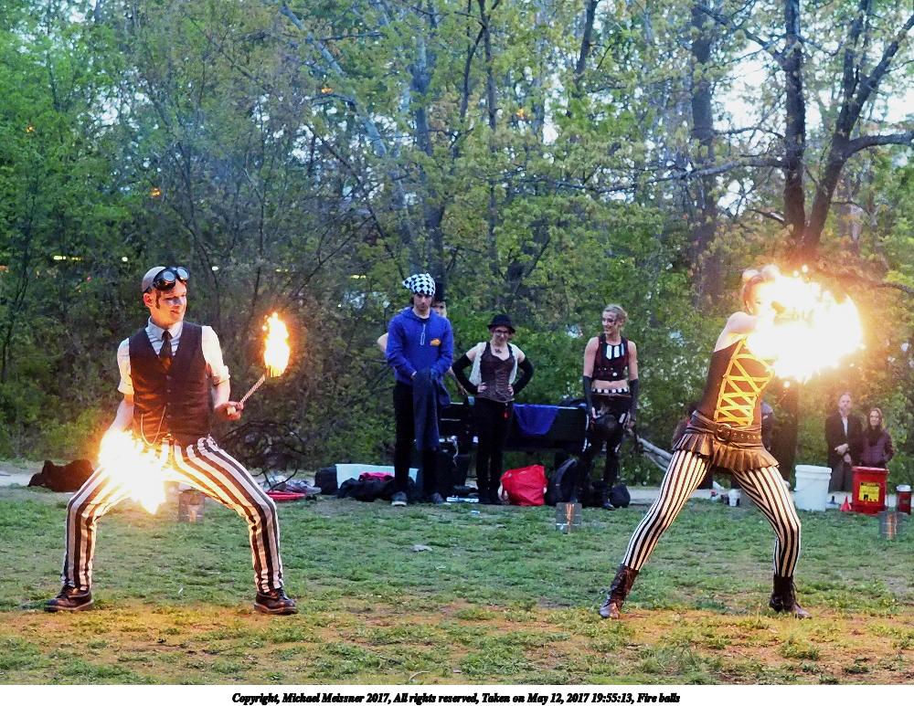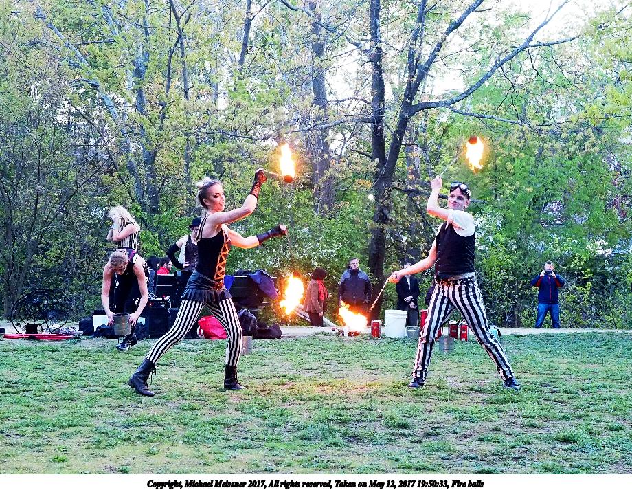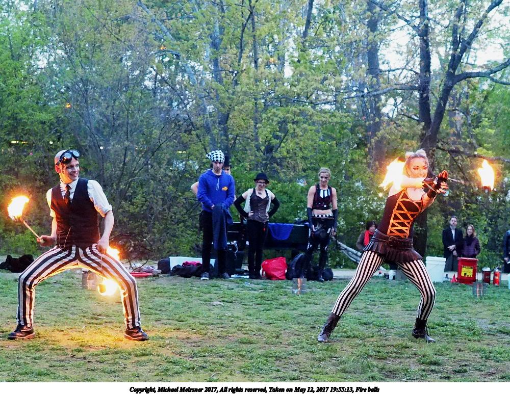 Picture #87: Fire balls #13 Thumb: 450x300, 74,449 bytes (73K) Small: 900x623, 202,290 bytes (198K), (html file) Large: 3600x2400, 7,581,519 bytes (7.2M), (html file) Copyright, Michael Meissner 2017, All rights reserved Olympus E-M1-I camera with Olympus-m43 12-40mm f/2.8 lens f/2.8, ISO 2500, 1/200 sec, 21.0mm, shutter priority, vivid color, SHQ, matrix metering, digital zoom x2, IS Auto, noise filter low, anti-shock 35mm equivalent focal length 84.0mm, digital zoom x2 Programs used: crop, gimp, raw therapee Taken by Michael Meissner on May 12, 2017 19:53:23 Last modified on April 28, 2018 at 10:50 |