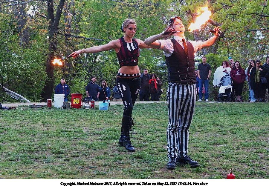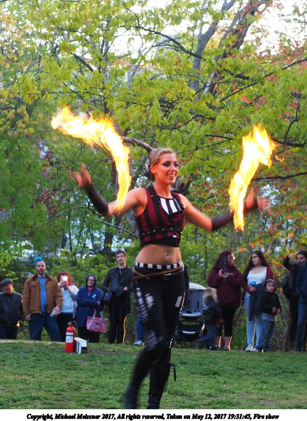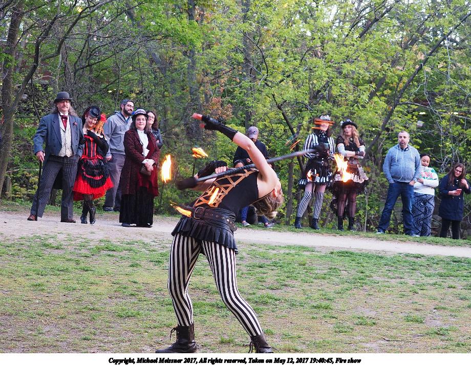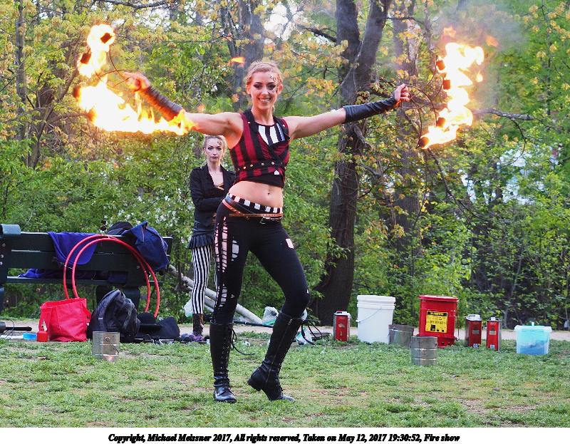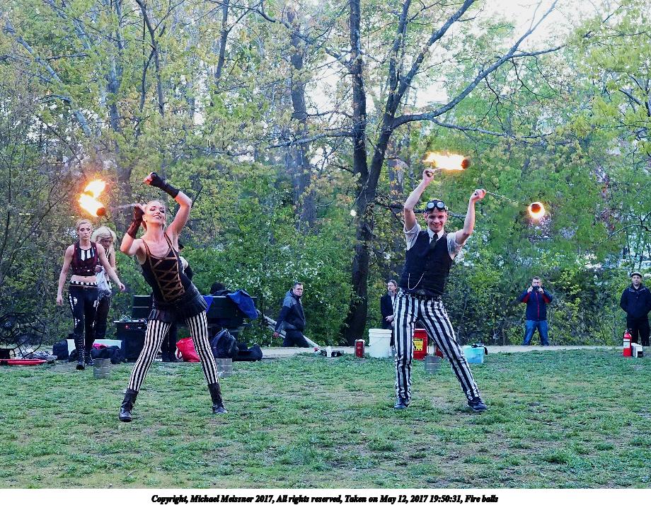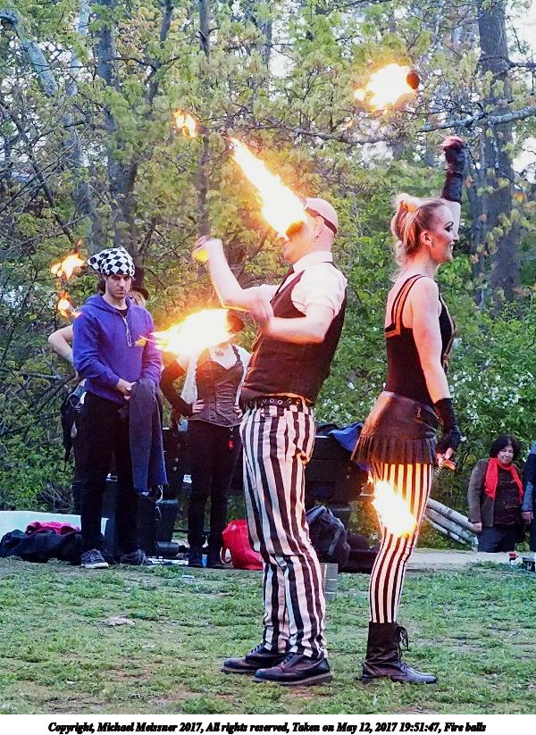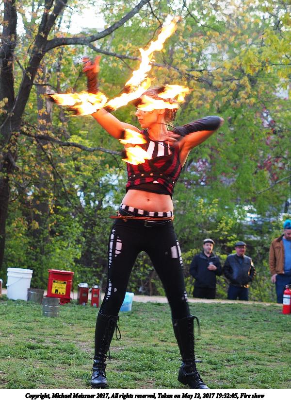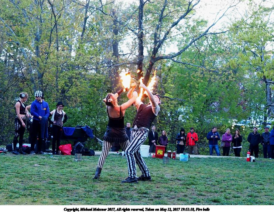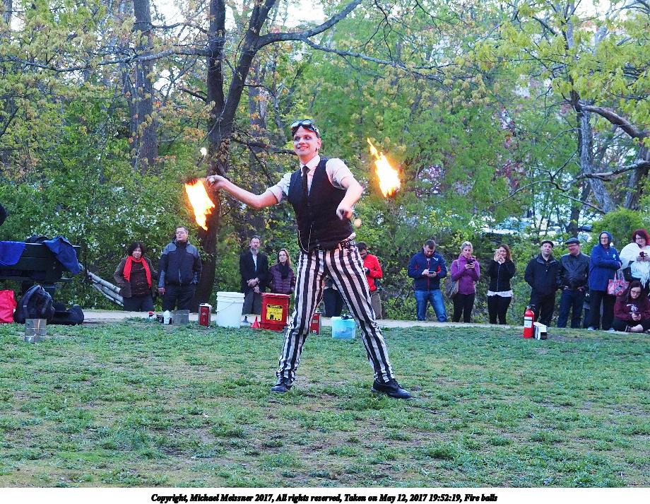 Picture #87: Fire balls #13 Thumb: 450x300, 74,449 bytes (73K) Small: 900x623, 202,290 bytes (198K), (html file) Large: 3600x2400, 7,581,519 bytes (7.2M), (html file) Copyright, Michael Meissner 2017, All rights reserved Olympus E-M1-I camera with Olympus-m43 12-40mm f/2.8 lens f/2.8, ISO 2500, 1/200 sec, 21.0mm, shutter priority, vivid color, SHQ, matrix metering, digital zoom x2, IS Auto, noise filter low, anti-shock 35mm equivalent focal length 84.0mm, digital zoom x2 Programs used: crop, gimp, raw therapee Taken by Michael Meissner on May 12, 2017 19:53:23 Last modified on April 28, 2018 at 10:50 |