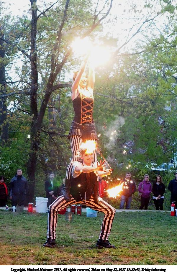 Picture #93: Tricky balancing #5 Thumb: 480x360, 86,312 bytes (85K) Small: 800x623, 172,381 bytes (169K), (html file) Large: 2400x1800, 3,809,158 bytes (3.6M), (html file) Copyright, Michael Meissner 2017, All rights reserved Olympus E-M1-I camera with Olympus-m43 12-40mm f/2.8 lens f/2.8, ISO 2500, 1/200 sec, 19.0mm, shutter priority, vivid color, SHQ, matrix metering, digital zoom x2, IS Auto, noise filter low, anti-shock 35mm equivalent focal length 76.0mm, digital zoom x2 Programs used: crop, gimp, raw therapee Taken by Michael Meissner on May 12, 2017 19:54:15 Last modified on April 28, 2018 at 10:50 |