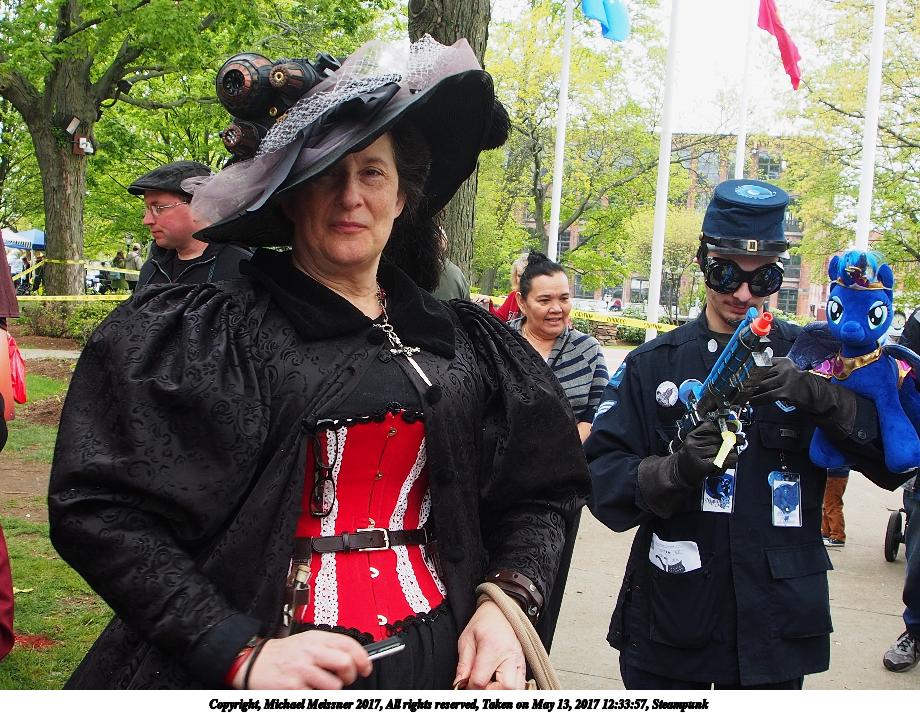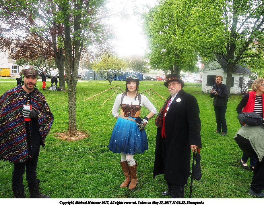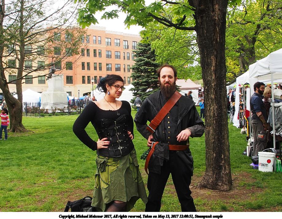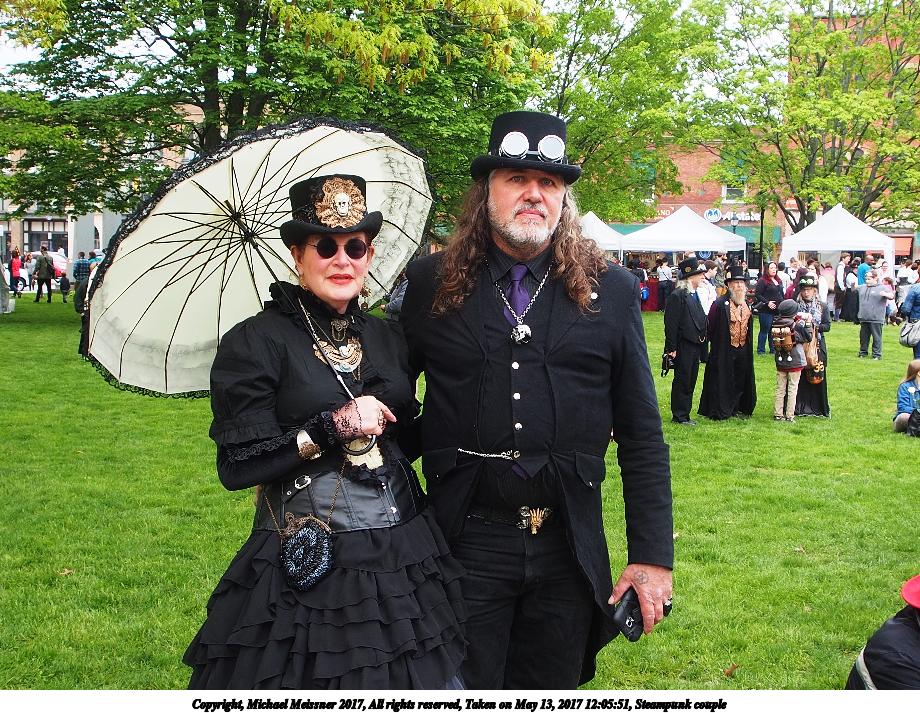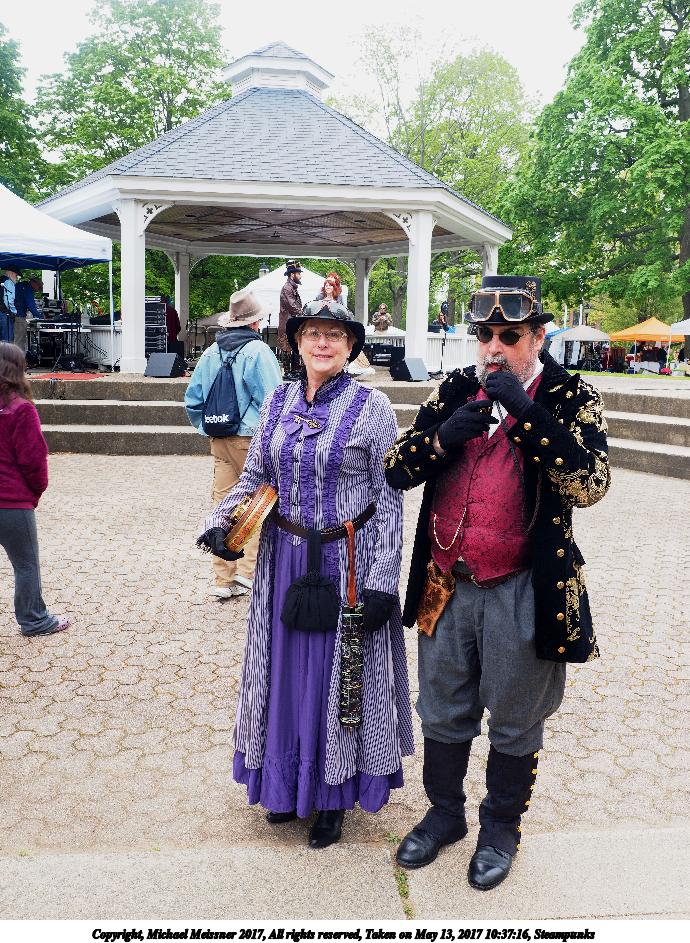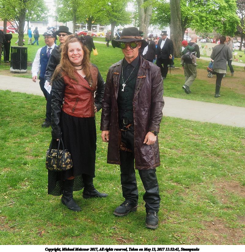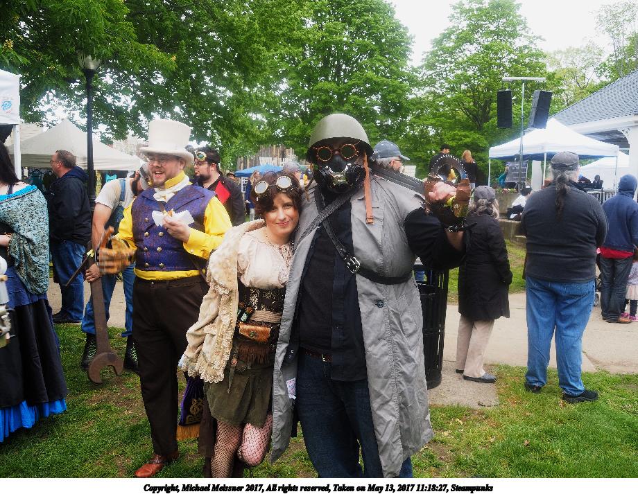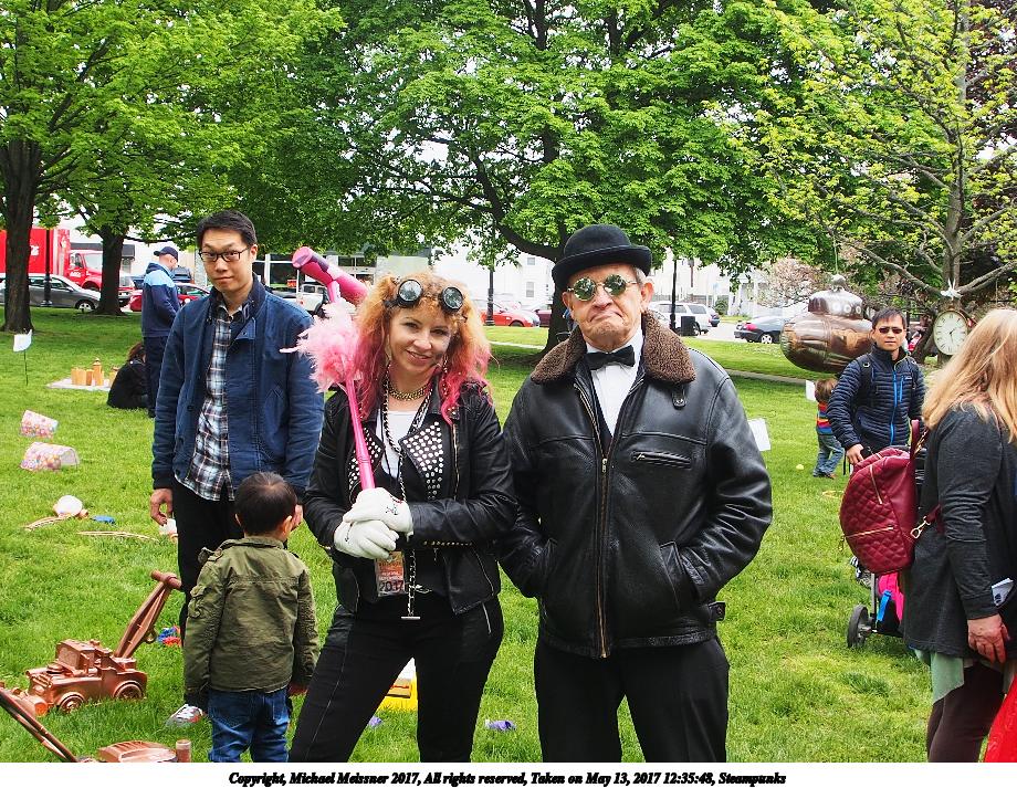 Picture #223: Steampunk couple #8 Thumb: 460x345, 66,948 bytes (66K) Small: 920x713, 232,239 bytes (227K), (html file) Large: 4600x3450, 4,820,456 bytes (4.6M), (html file) Copyright, Michael Meissner 2017, All rights reserved Olympus E-M5-I camera with Olympus-m43 12-50mm f/3.5-6.3 lens f/5.6, ISO 200, 1/200 sec, 12.0mm, auto mode, vivid color, matrix metering, digital zoom x2, IS1 (All Direction Shake IS), noise filter low 35mm equivalent focal length 48.0mm, digital zoom x2 Programs used: adjusttime, crop, raw therapee Taken by Michael Meissner on May 13, 2017 14:46:46 Last modified on April 27, 2018 at 23:20 |