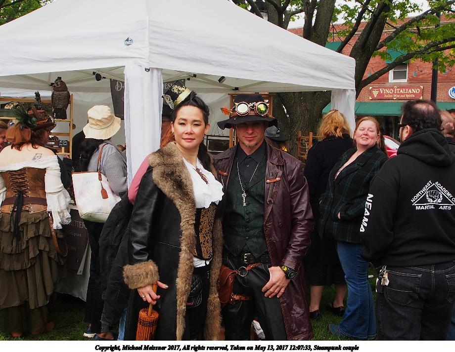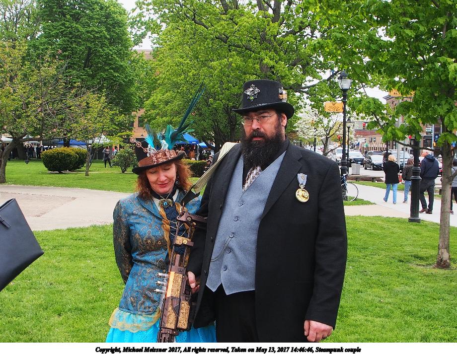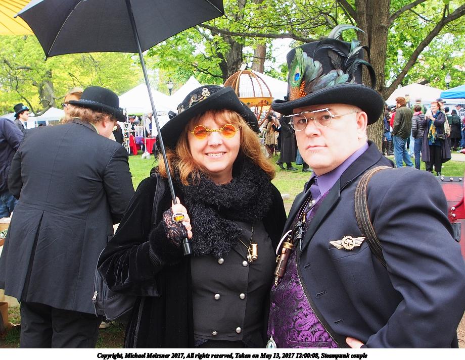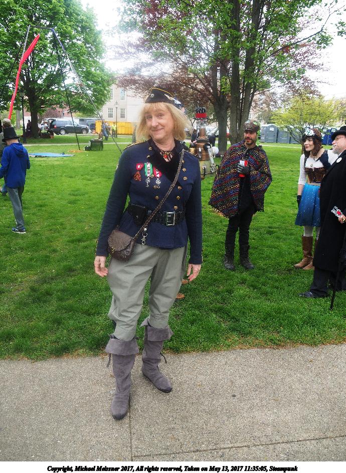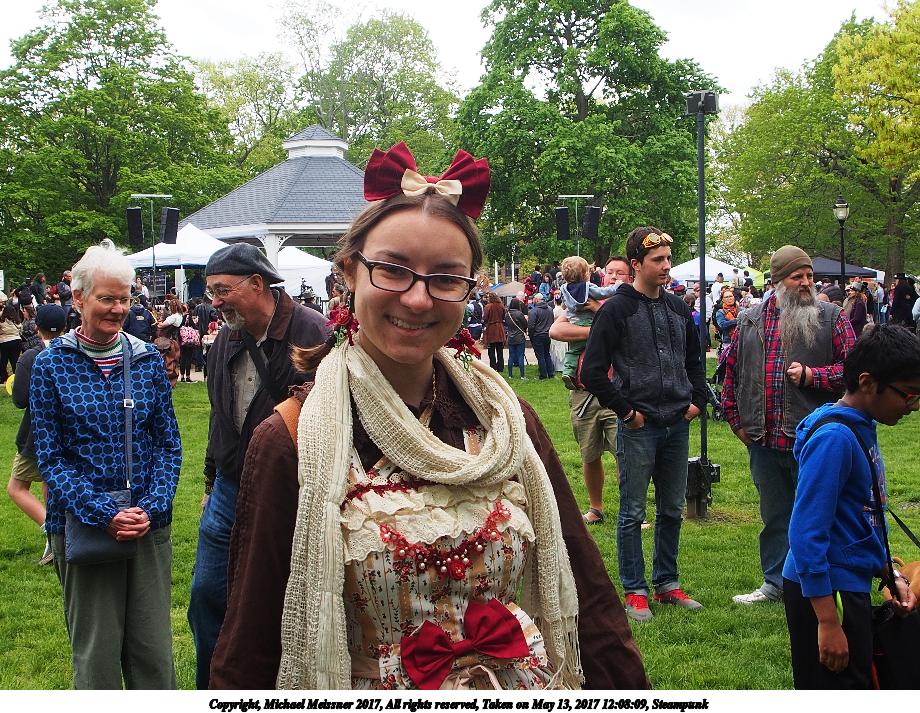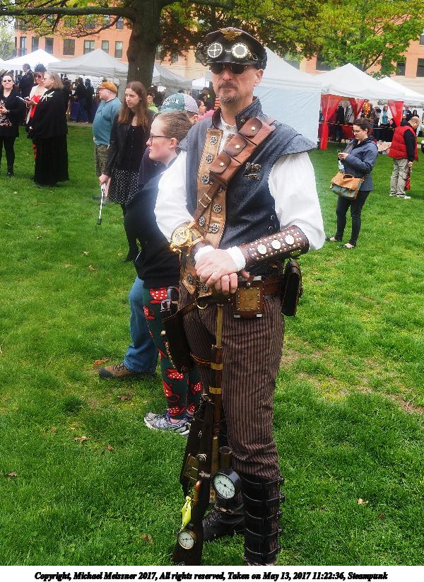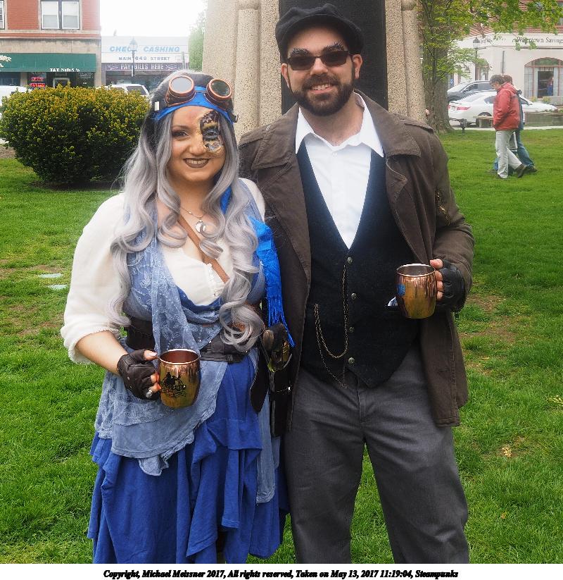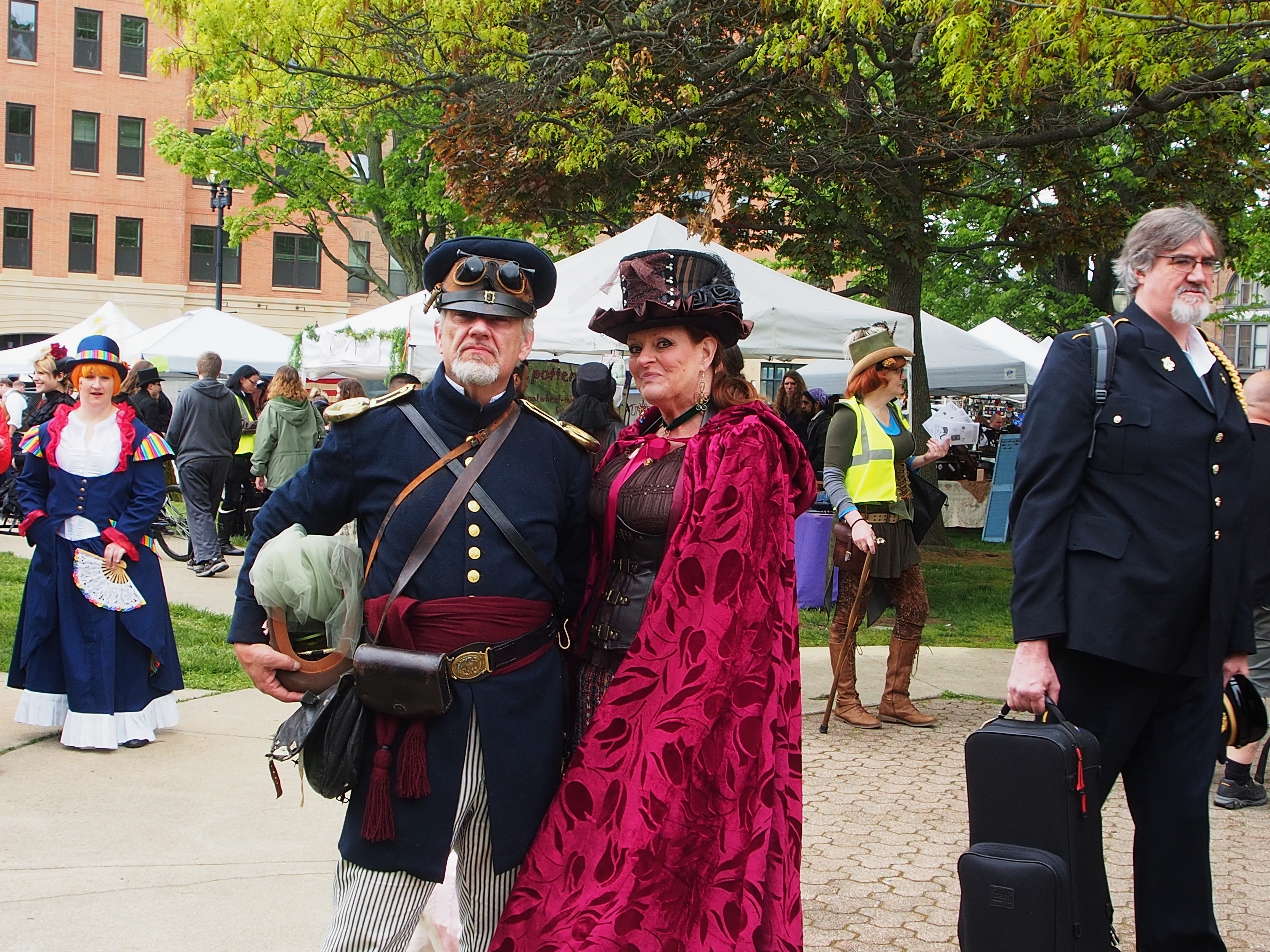 Picture #223: Steampunk couple #8 Thumb: 460x345, 66,948 bytes (66K) Small: 920x713, 232,239 bytes (227K), (html file) Large: 4600x3450, 4,820,456 bytes (4.6M), (html file) Copyright, Michael Meissner 2017, All rights reserved Olympus E-M5-I camera with Olympus-m43 12-50mm f/3.5-6.3 lens f/5.6, ISO 200, 1/200 sec, 12.0mm, auto mode, vivid color, matrix metering, digital zoom x2, IS1 (All Direction Shake IS), noise filter low 35mm equivalent focal length 48.0mm, digital zoom x2 Programs used: adjusttime, crop, raw therapee Taken by Michael Meissner on May 13, 2017 14:46:46 Last modified on April 27, 2018 at 23:20 |