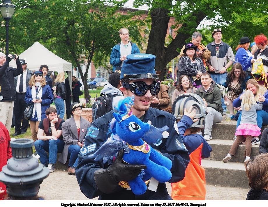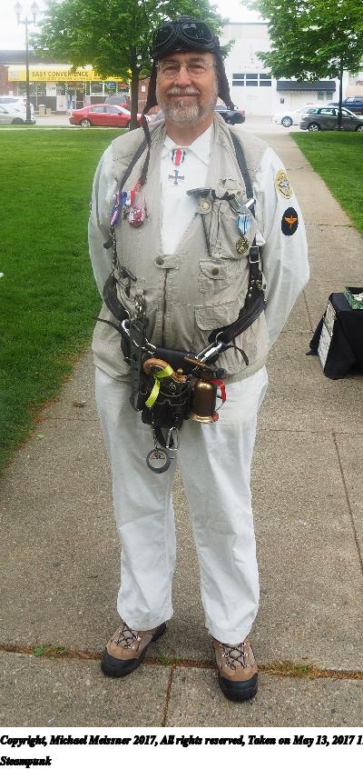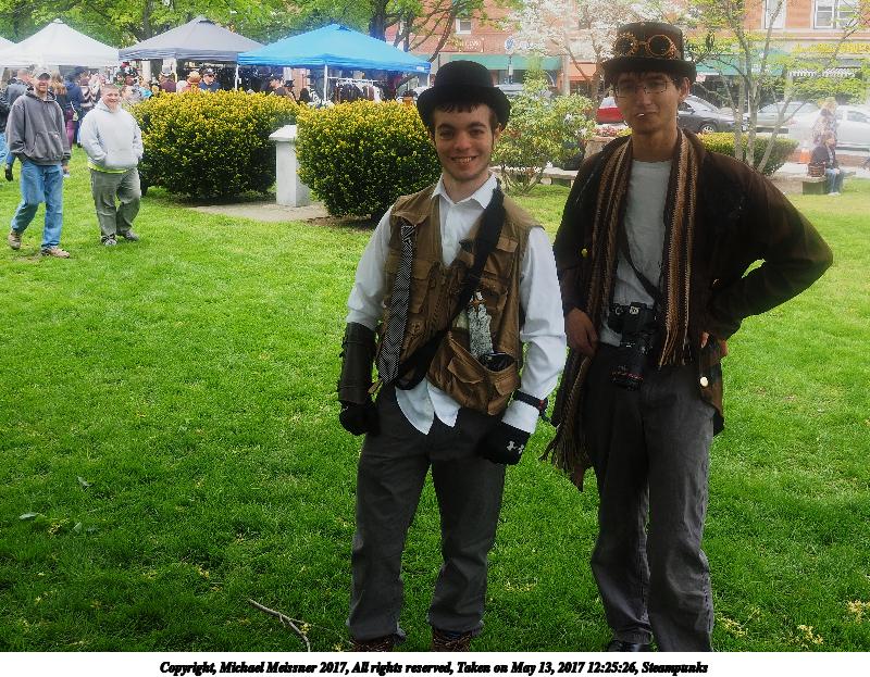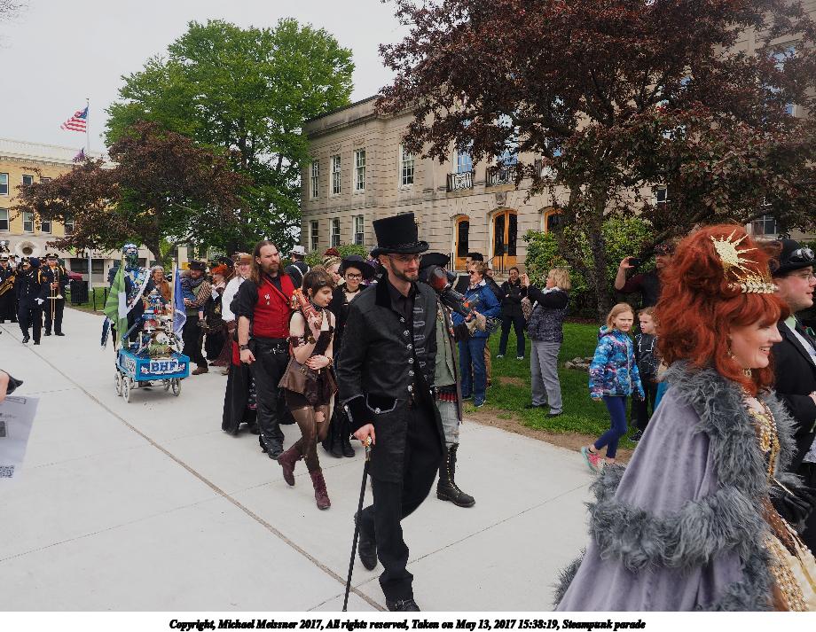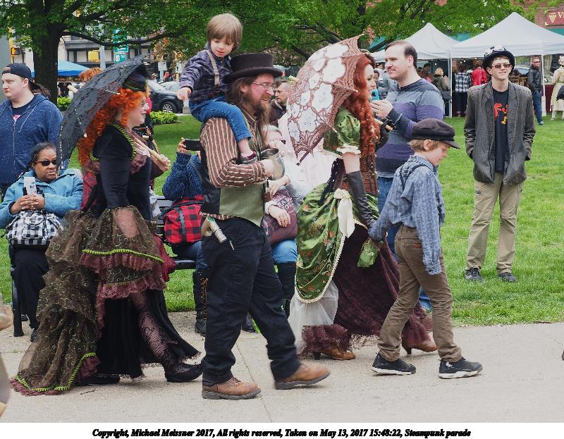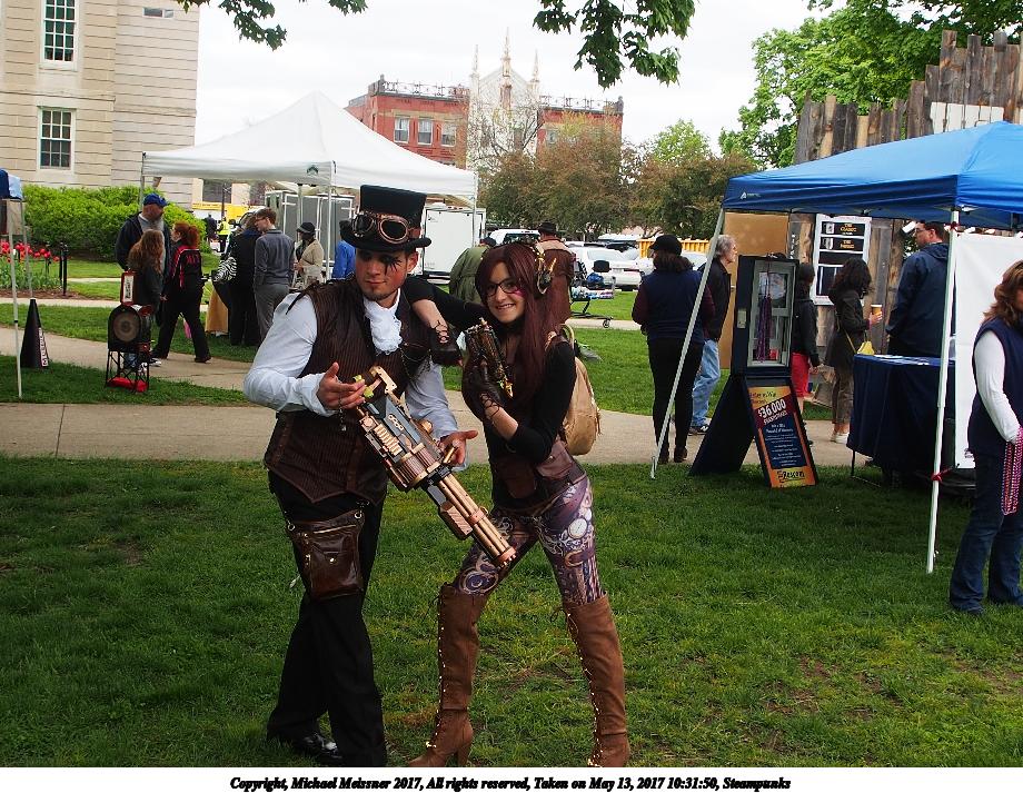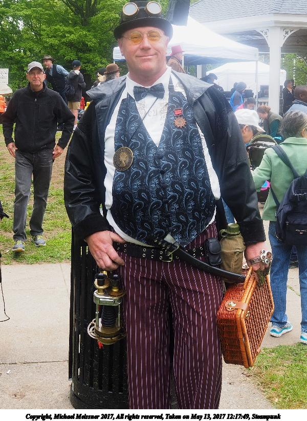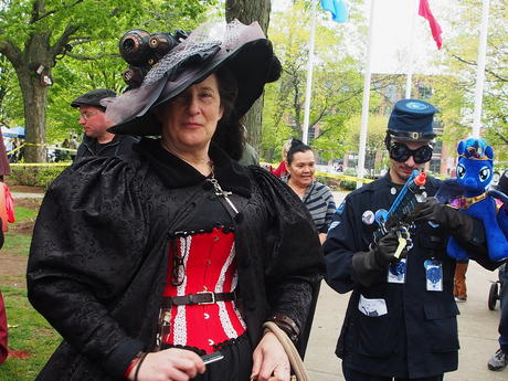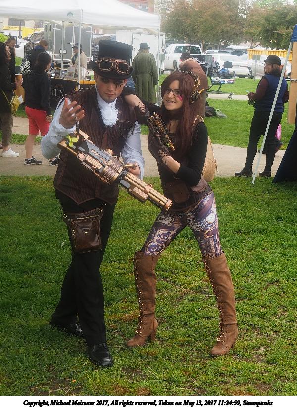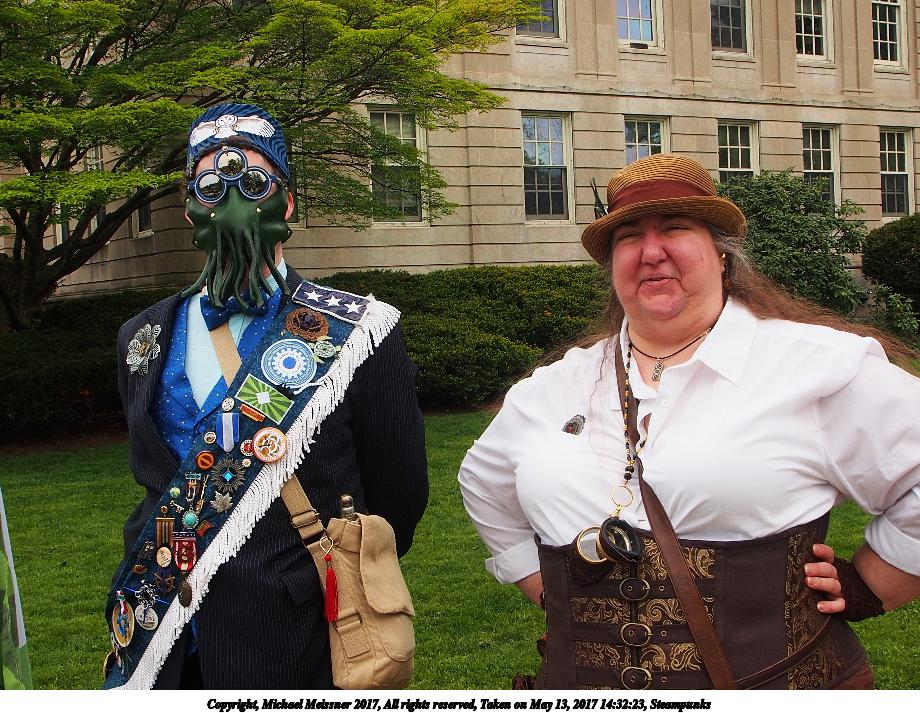 Picture #223: Steampunk couple #8 Thumb: 460x345, 66,948 bytes (66K) Small: 920x713, 232,239 bytes (227K), (html file) Large: 4600x3450, 4,820,456 bytes (4.6M), (html file) Copyright, Michael Meissner 2017, All rights reserved Olympus E-M5-I camera with Olympus-m43 12-50mm f/3.5-6.3 lens f/5.6, ISO 200, 1/200 sec, 12.0mm, auto mode, vivid color, matrix metering, digital zoom x2, IS1 (All Direction Shake IS), noise filter low 35mm equivalent focal length 48.0mm, digital zoom x2 Programs used: adjusttime, crop, raw therapee Taken by Michael Meissner on May 13, 2017 14:46:46 Last modified on April 27, 2018 at 23:20 |