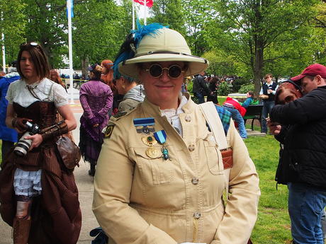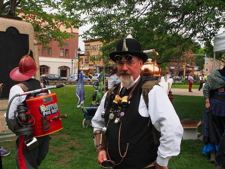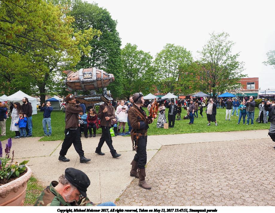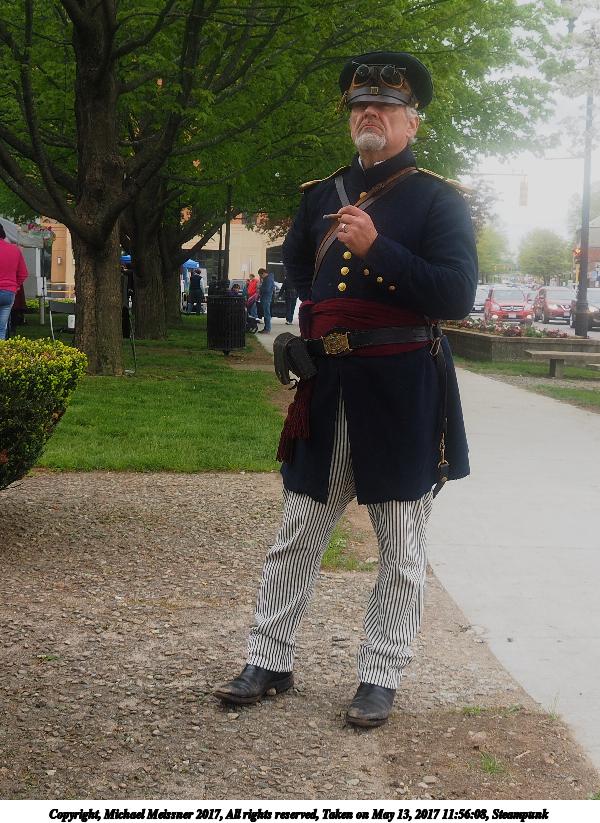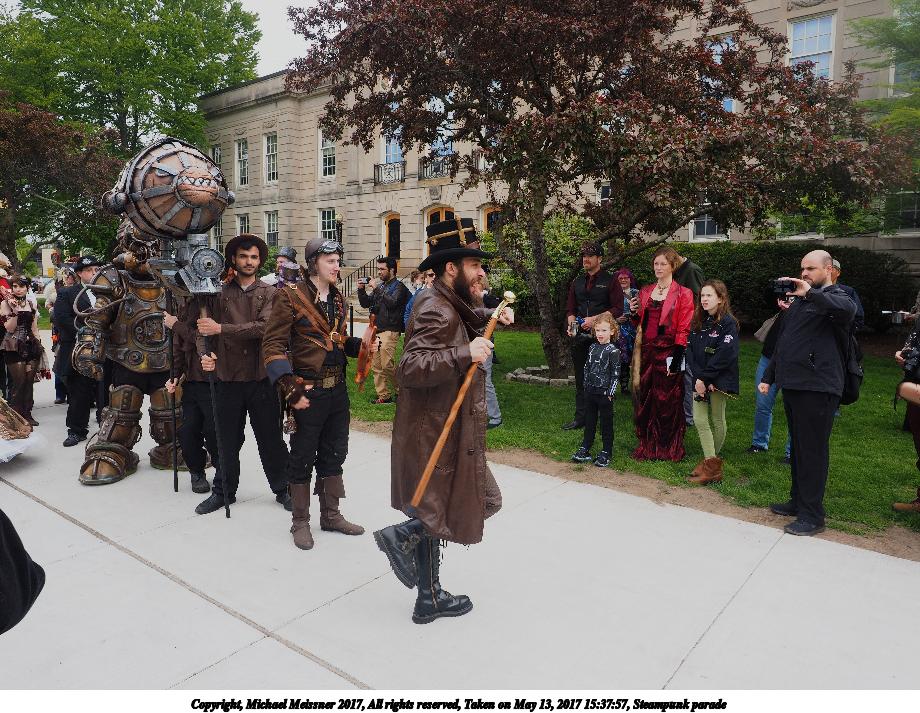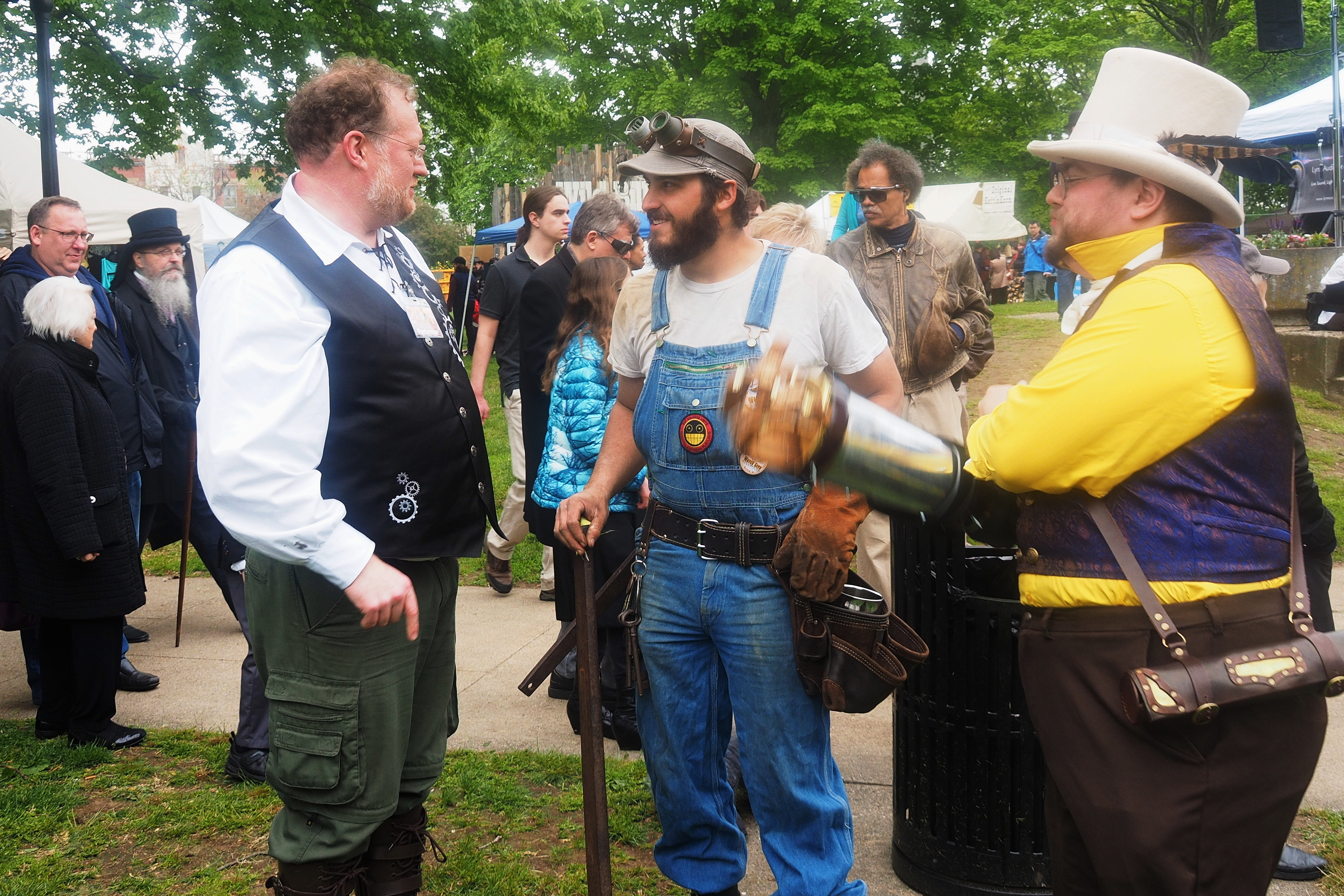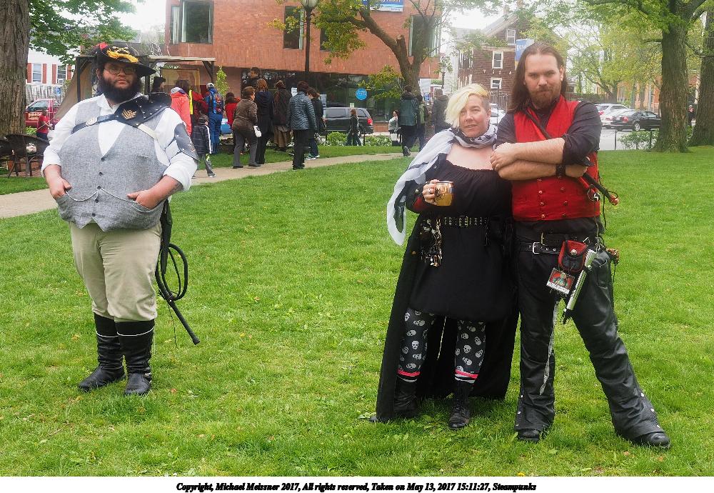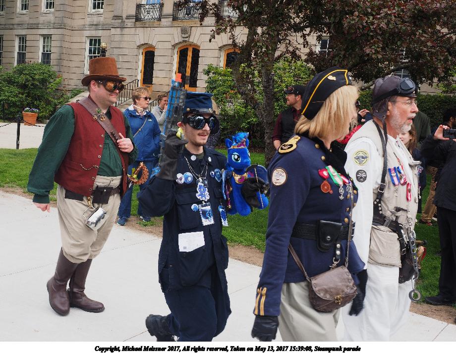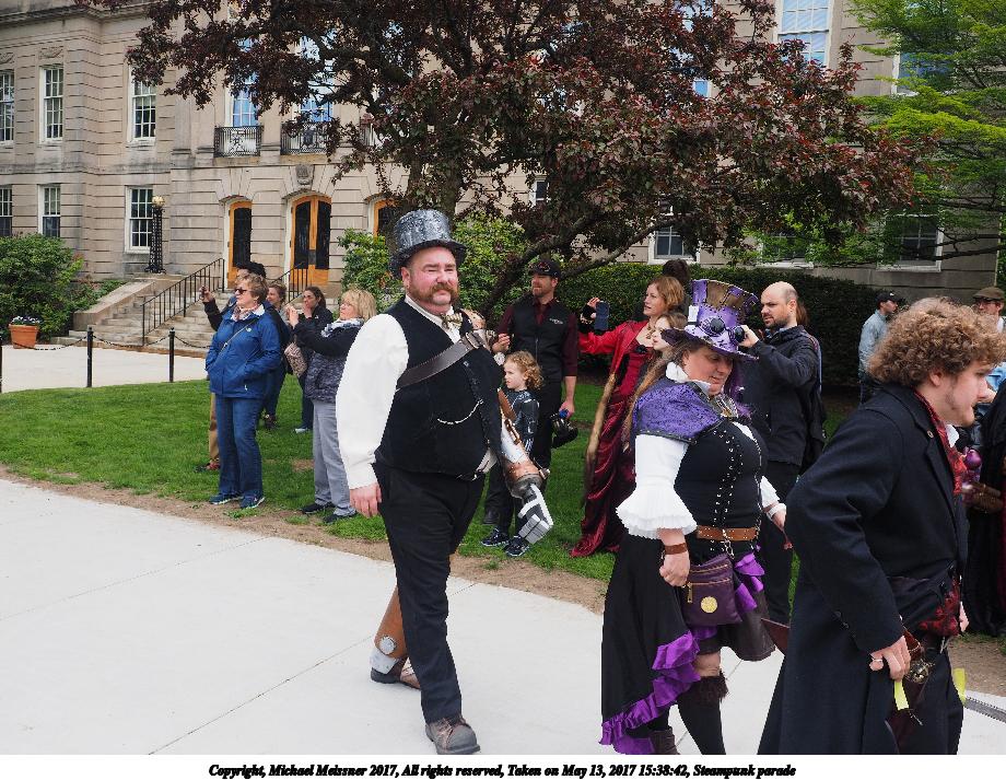 Picture #223: Steampunk couple #8 Thumb: 460x345, 66,948 bytes (66K) Small: 920x713, 232,239 bytes (227K), (html file) Large: 4600x3450, 4,820,456 bytes (4.6M), (html file) Copyright, Michael Meissner 2017, All rights reserved Olympus E-M5-I camera with Olympus-m43 12-50mm f/3.5-6.3 lens f/5.6, ISO 200, 1/200 sec, 12.0mm, auto mode, vivid color, matrix metering, digital zoom x2, IS1 (All Direction Shake IS), noise filter low 35mm equivalent focal length 48.0mm, digital zoom x2 Programs used: adjusttime, crop, raw therapee Taken by Michael Meissner on May 13, 2017 14:46:46 Last modified on April 27, 2018 at 23:20 |
