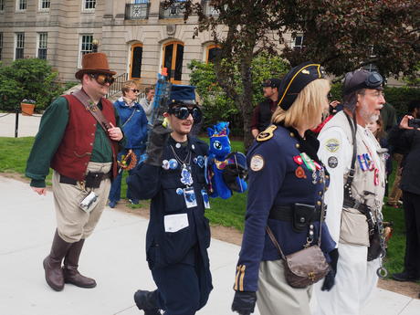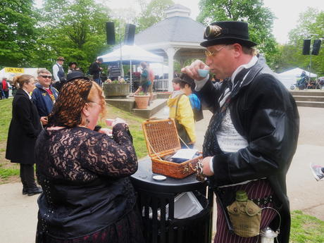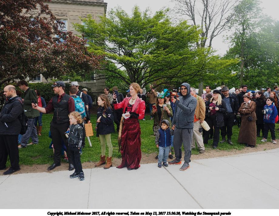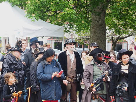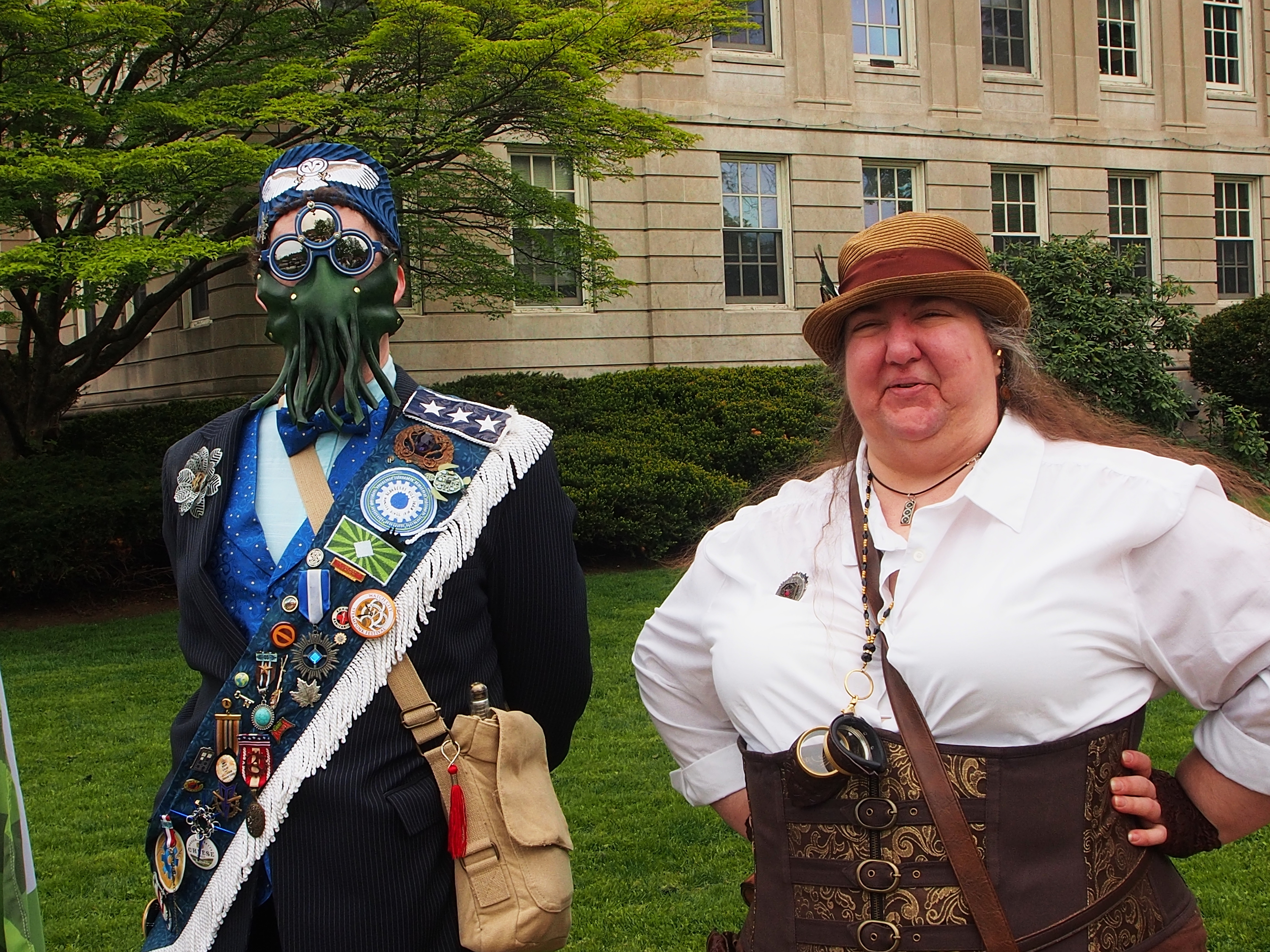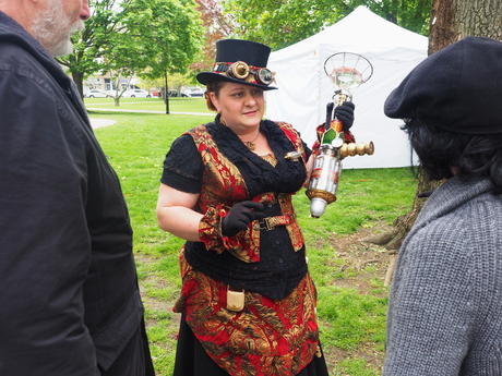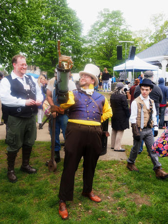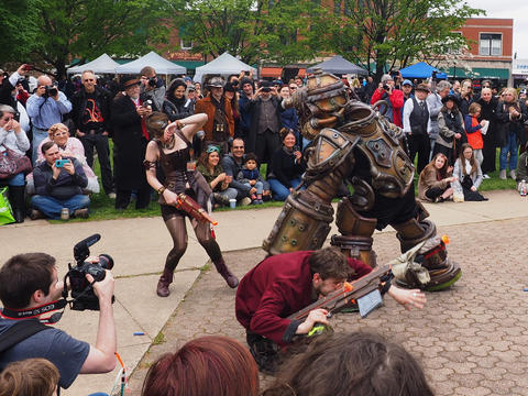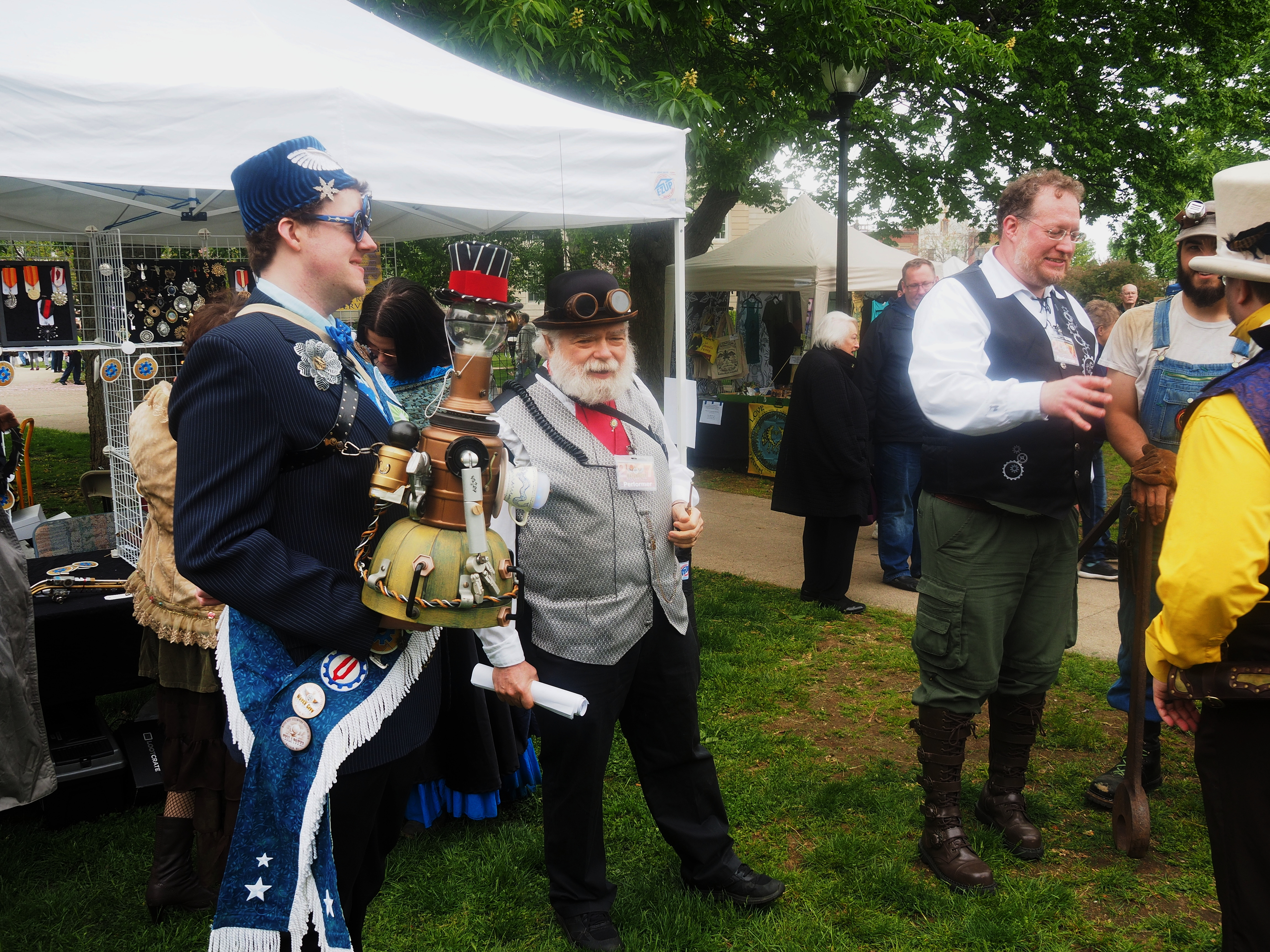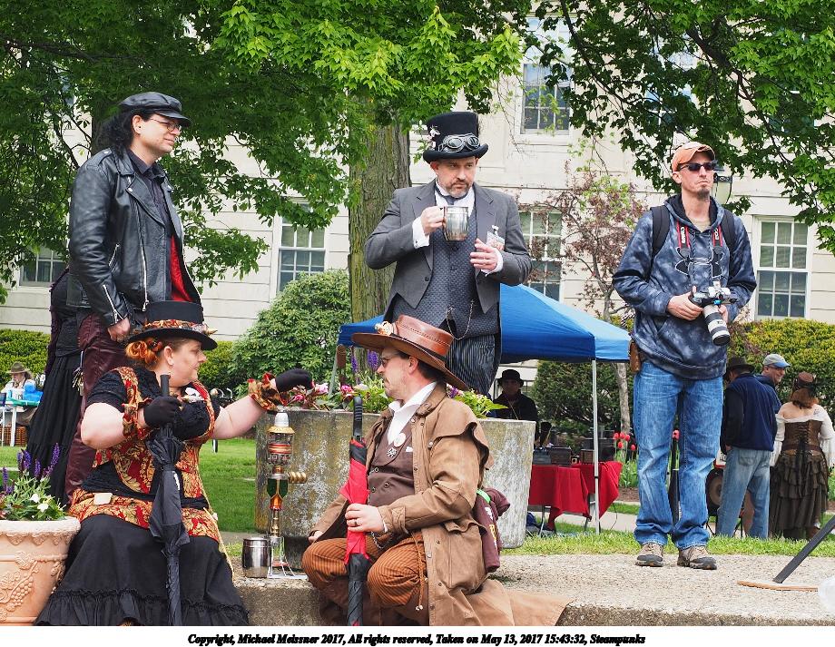 Picture #223: Steampunk couple #8 Thumb: 460x345, 66,948 bytes (66K) Small: 920x713, 232,239 bytes (227K), (html file) Large: 4600x3450, 4,820,456 bytes (4.6M), (html file) Copyright, Michael Meissner 2017, All rights reserved Olympus E-M5-I camera with Olympus-m43 12-50mm f/3.5-6.3 lens f/5.6, ISO 200, 1/200 sec, 12.0mm, auto mode, vivid color, matrix metering, digital zoom x2, IS1 (All Direction Shake IS), noise filter low 35mm equivalent focal length 48.0mm, digital zoom x2 Programs used: adjusttime, crop, raw therapee Taken by Michael Meissner on May 13, 2017 14:46:46 Last modified on April 27, 2018 at 23:20 |