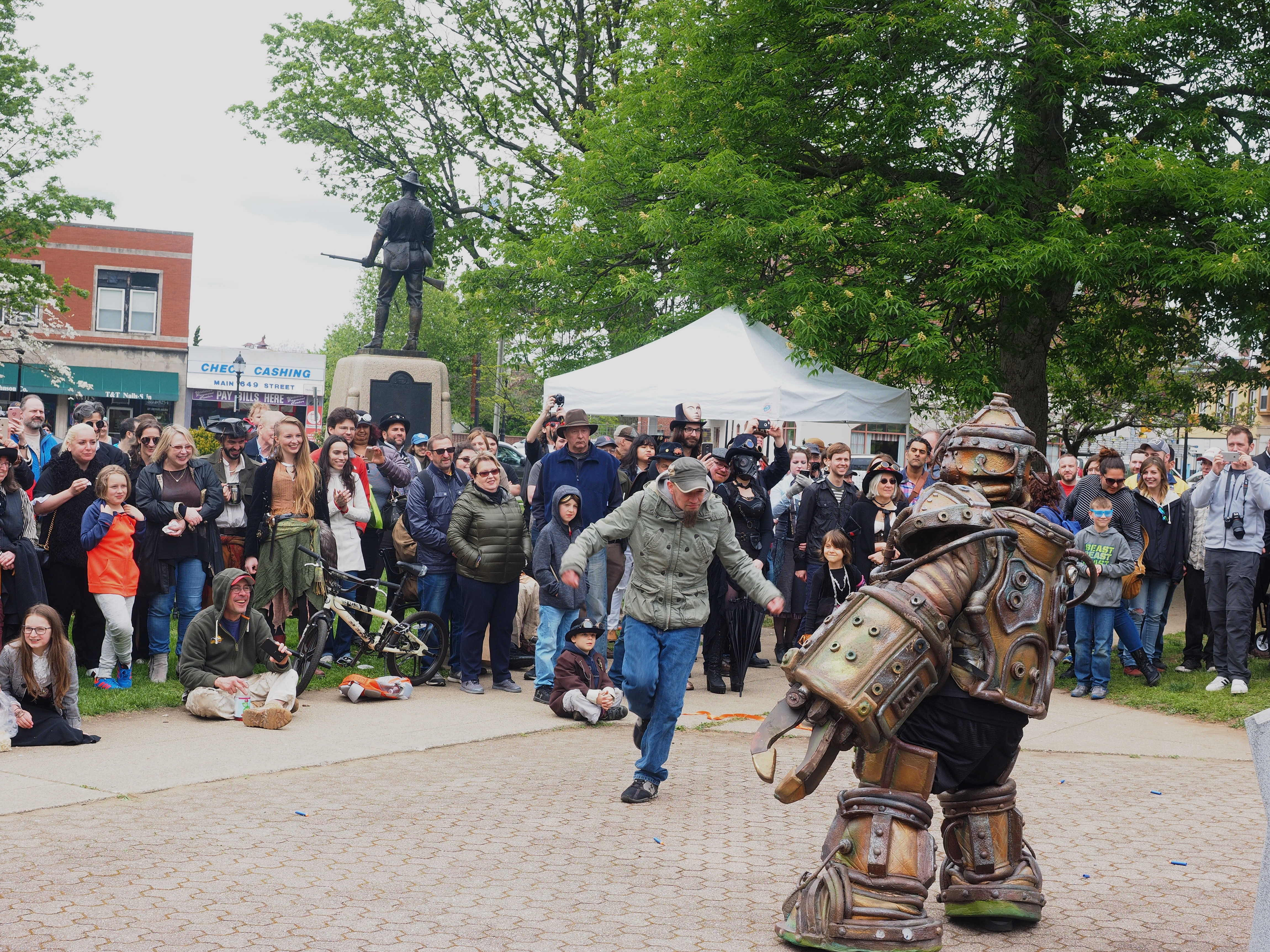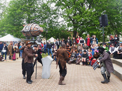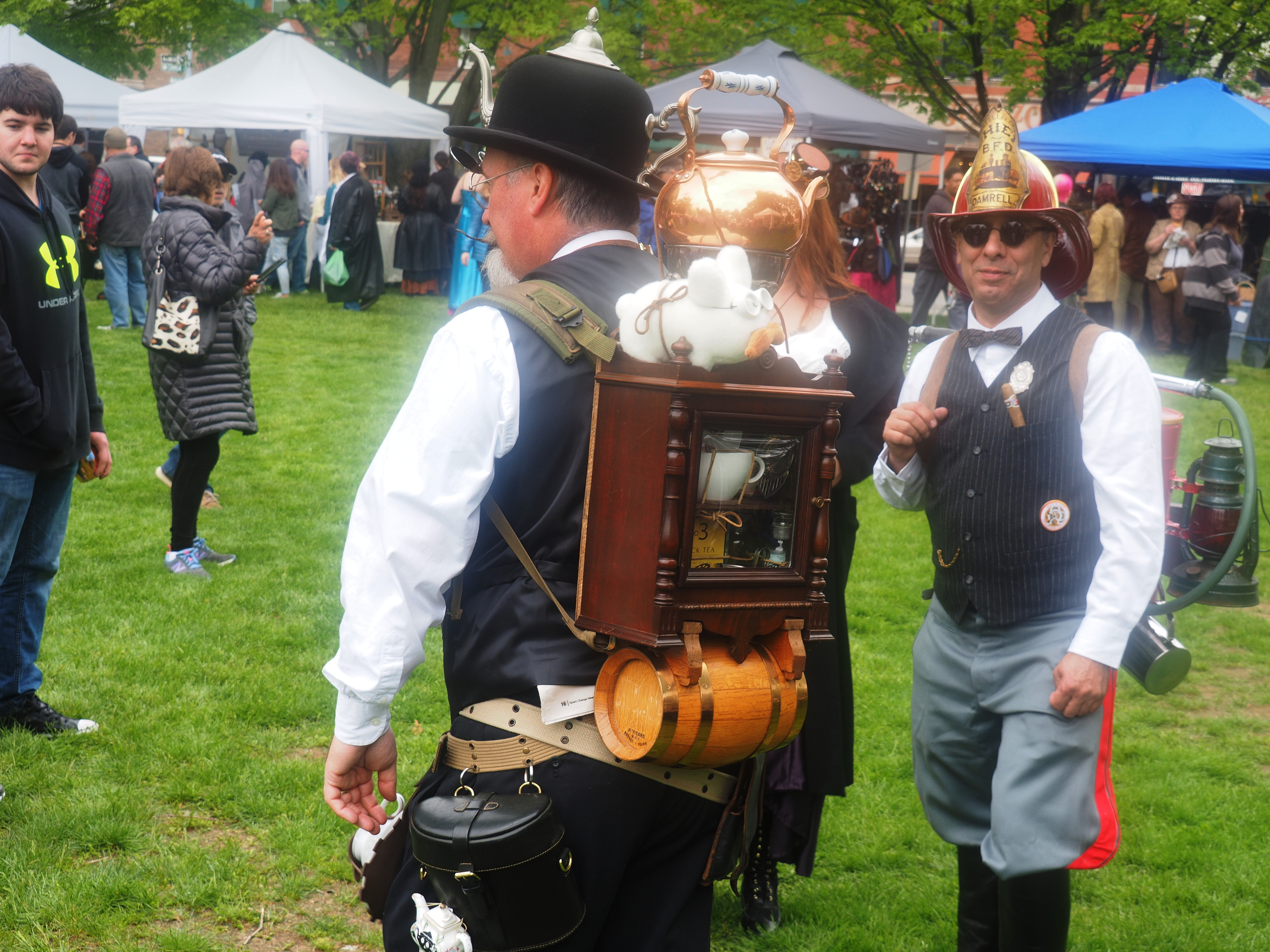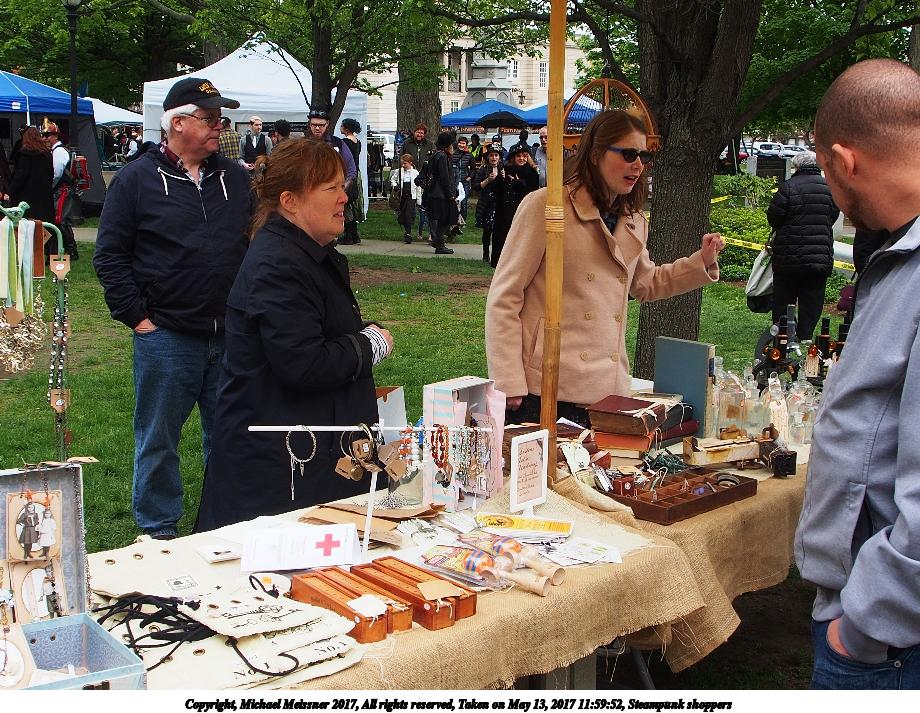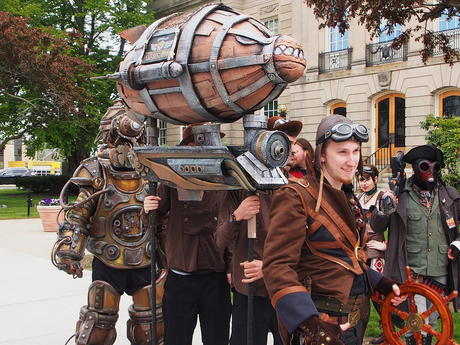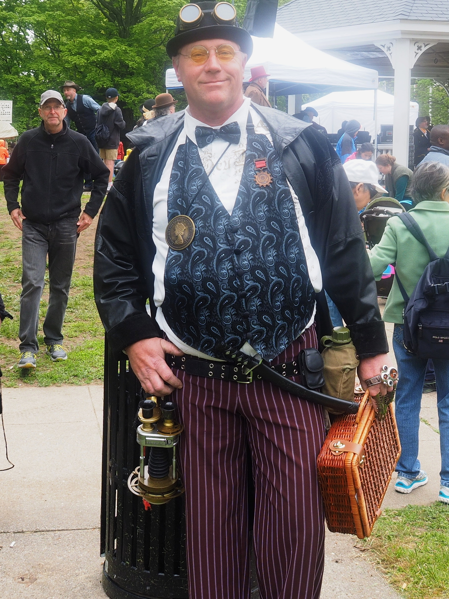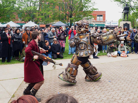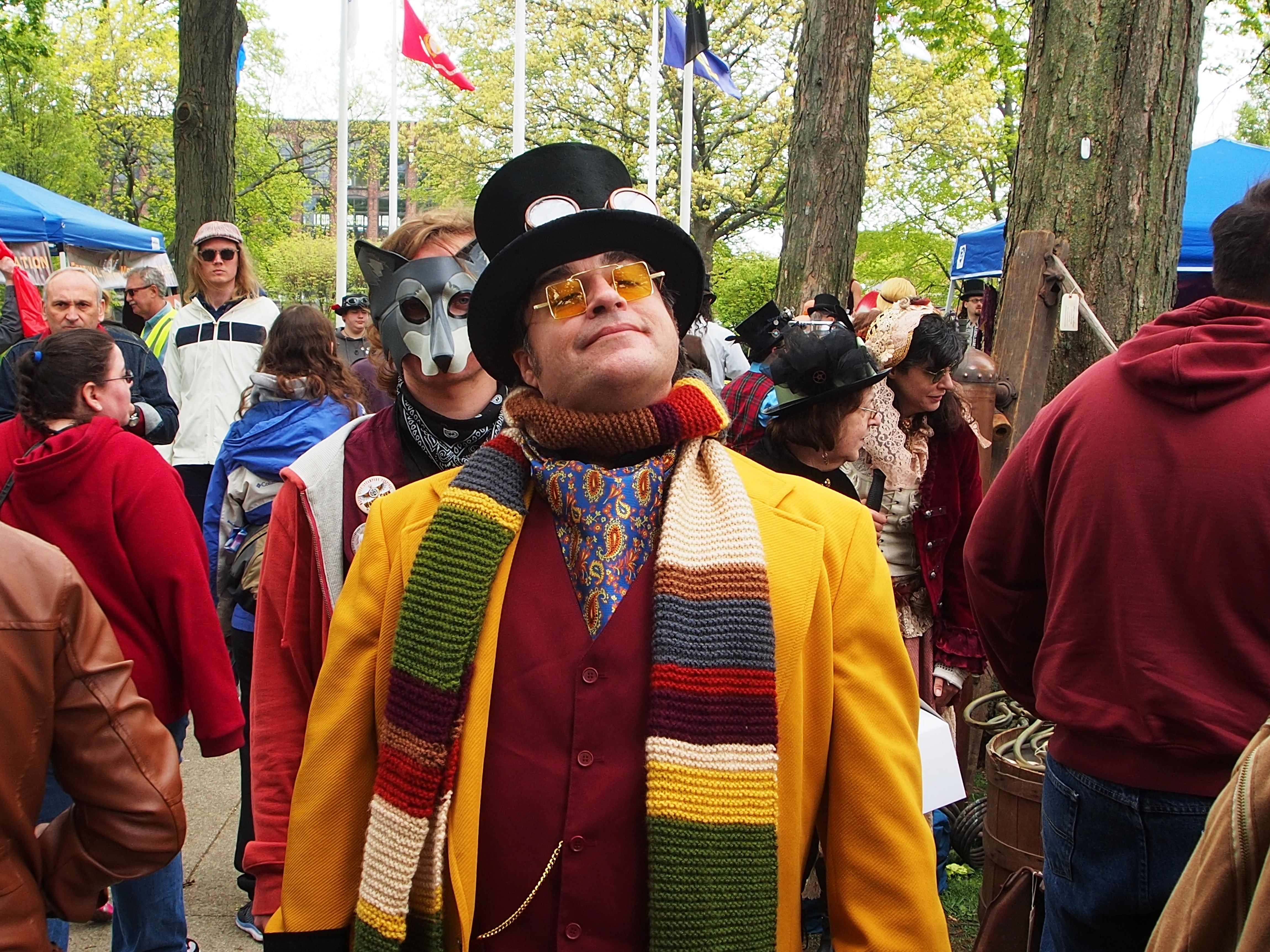 Picture #223: Steampunk couple #8 Thumb: 460x345, 66,948 bytes (66K) Small: 920x713, 232,239 bytes (227K), (html file) Large: 4600x3450, 4,820,456 bytes (4.6M), (html file) Copyright, Michael Meissner 2017, All rights reserved Olympus E-M5-I camera with Olympus-m43 12-50mm f/3.5-6.3 lens f/5.6, ISO 200, 1/200 sec, 12.0mm, auto mode, vivid color, matrix metering, digital zoom x2, IS1 (All Direction Shake IS), noise filter low 35mm equivalent focal length 48.0mm, digital zoom x2 Programs used: adjusttime, crop, raw therapee Taken by Michael Meissner on May 13, 2017 14:46:46 Last modified on April 27, 2018 at 23:20 |