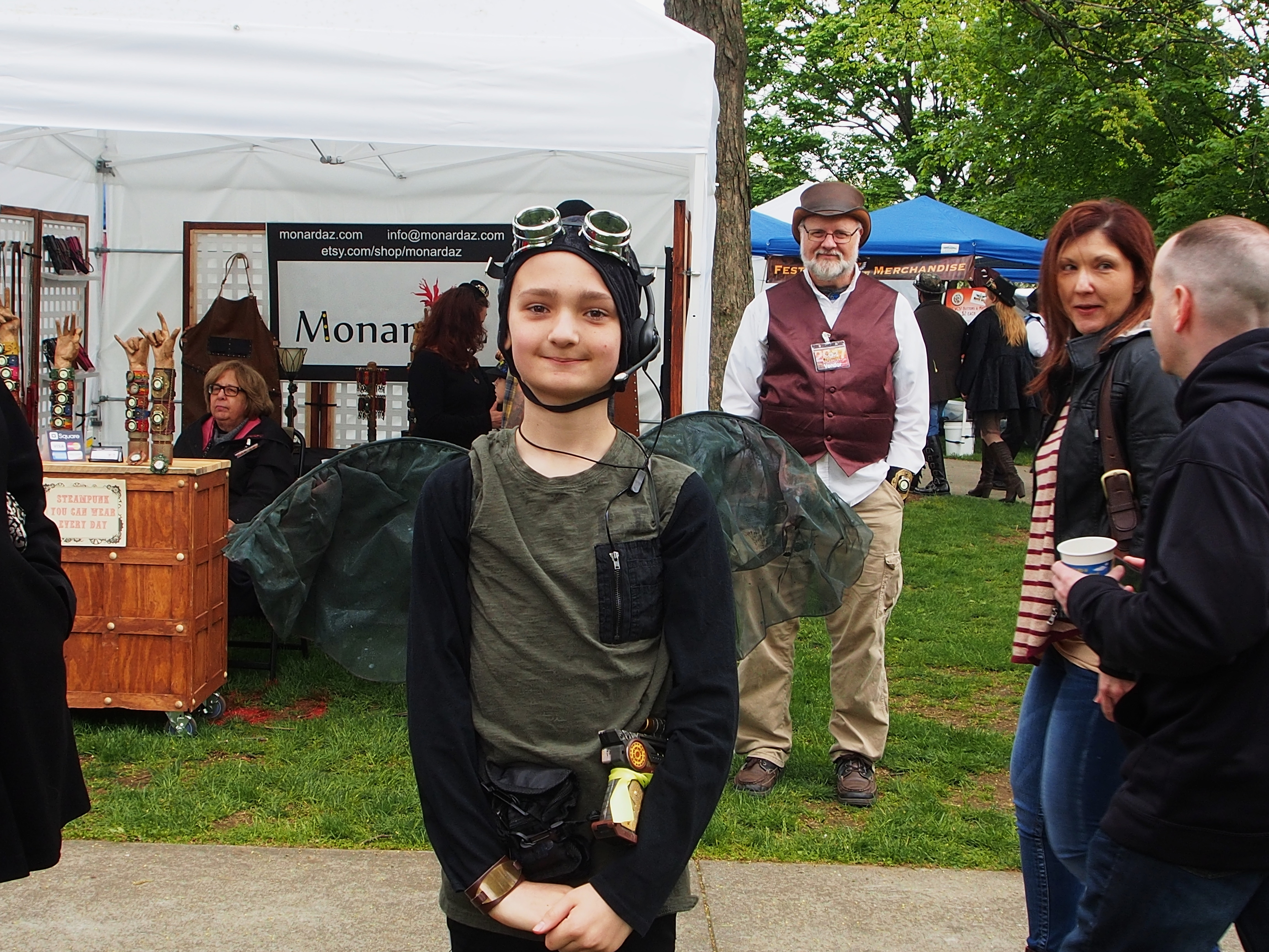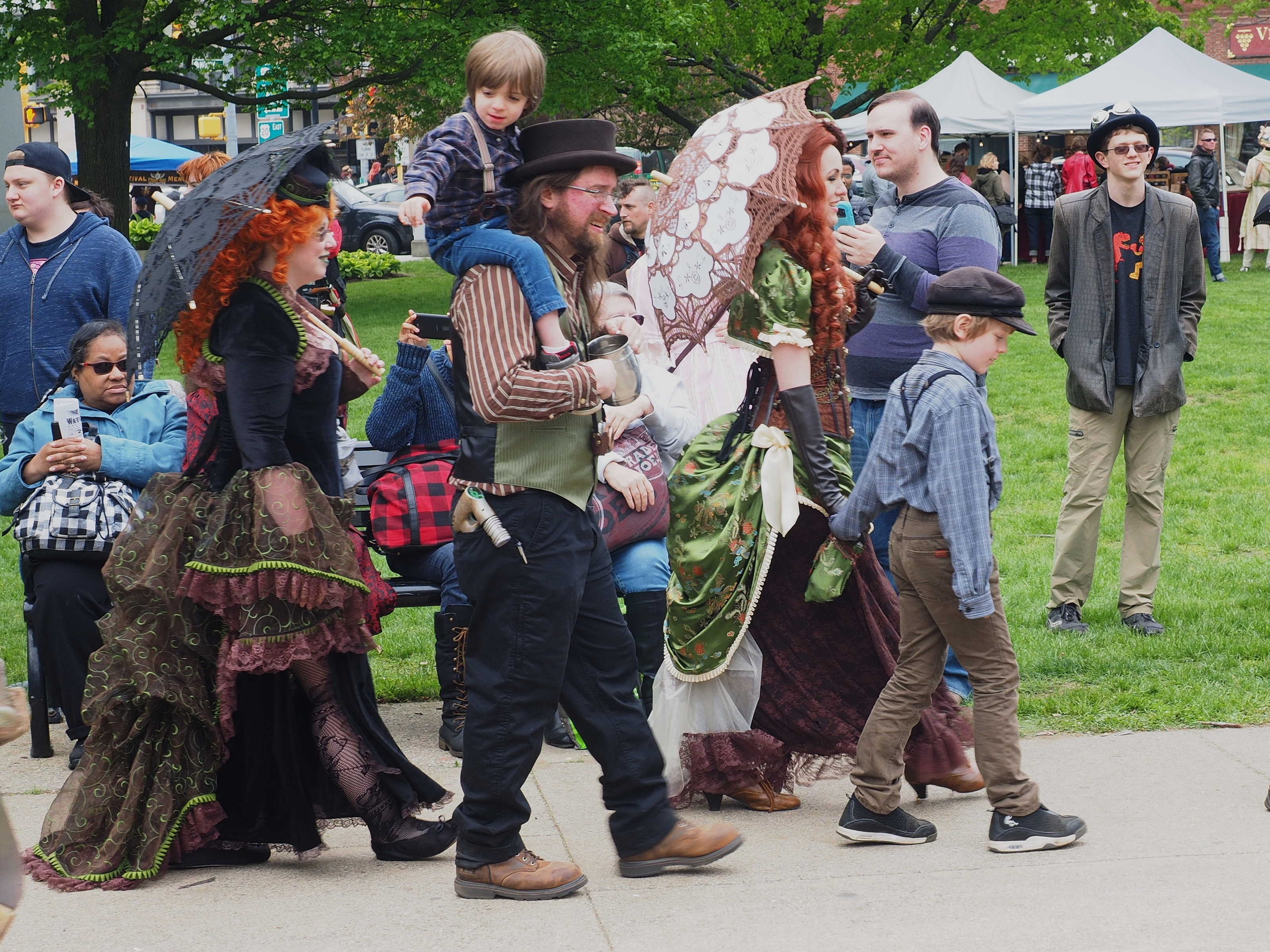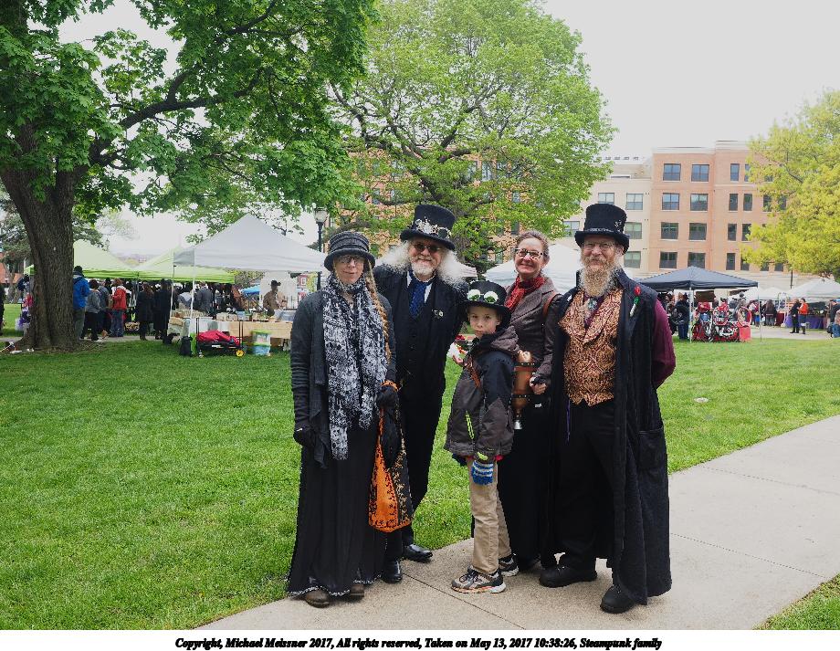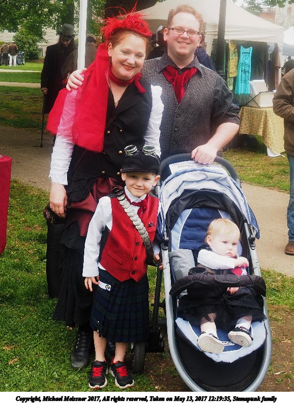 Picture #58: Stemapunk family Thumb: 360x480, 68,531 bytes (67K) Small: 600x823, 143,810 bytes (141K), (html file) Large: 1800x2400, 3,804,000 bytes (3.6M), (html file) Copyright, Michael Meissner 2017, All rights reserved Olympus E-M1-I camera with Olympus-m43 14-150mm-II f/4.0-5.6 lens f/6.3, ISO 200, 1/200 sec, 14.0mm, auto mode, vivid color, SHQ, matrix metering, IS Auto, noise reduction auto, noise filter low, anti-shock 35mm equivalent focal length 28.0mm Programs used: crop, gimp, raw therapee Taken by Michael Meissner on May 13, 2017 12:19:35 Last modified on April 27, 2018 at 23:11 |