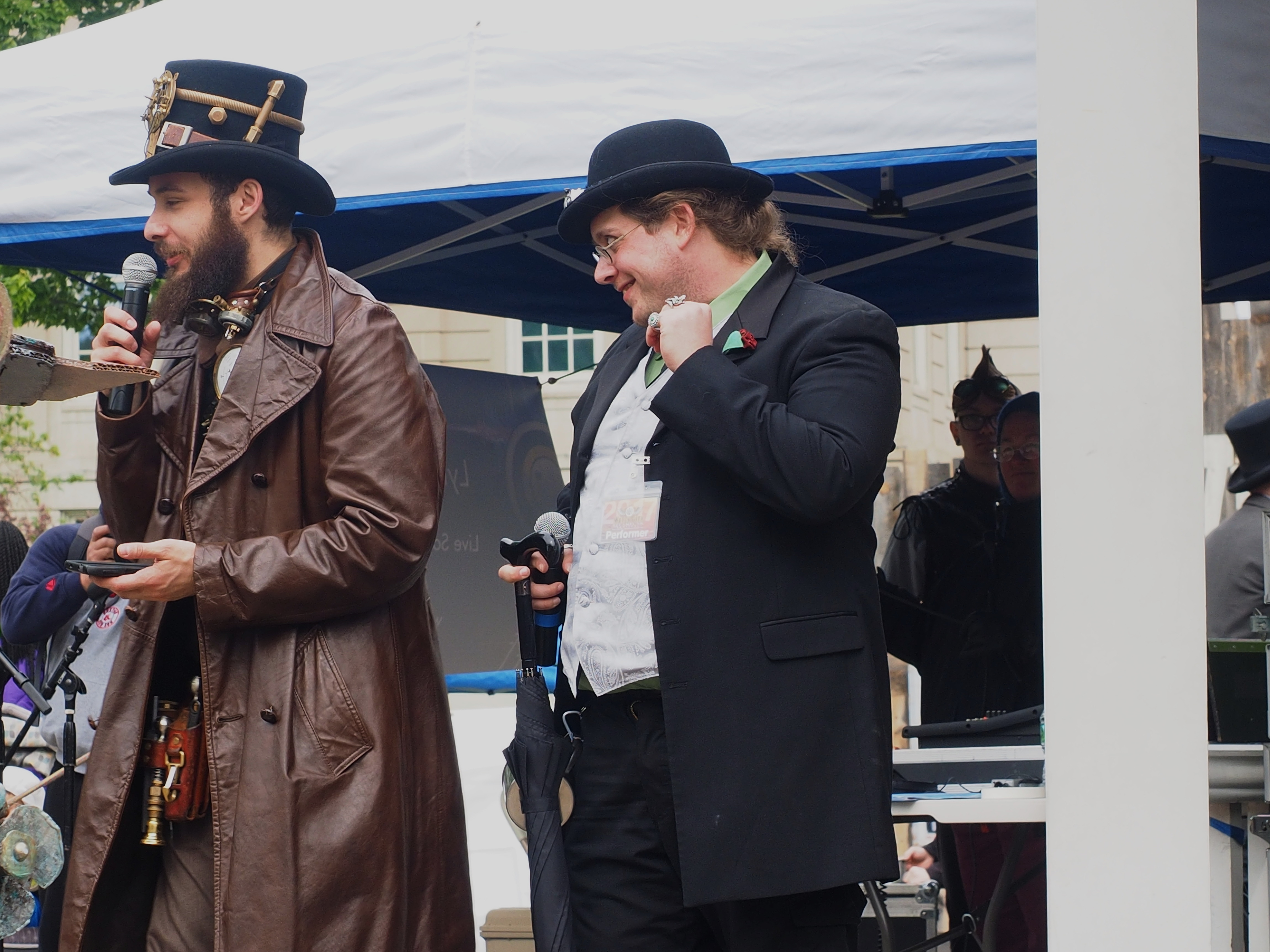 Picture #91: Steampunk couple Thumb: 460x345, 61,250 bytes (60K) Small: 920x713, 181,275 bytes (178K), (html file) Large: 4600x3450, 3,502,213 bytes (3.3M), (html file) Copyright, Michael Meissner 2017, All rights reserved Olympus E-M5-I camera with Olympus-m43 12-50mm f/3.5-6.3 lens f/4.5, ISO 200, 1/125 sec, 12.0mm, auto mode, vivid color, matrix metering, digital zoom x2, IS1 (All Direction Shake IS), noise filter low 35mm equivalent focal length 48.0mm, digital zoom x2 Programs used: crop, raw therapee, rotate right Taken by Michael Meissner on May 13, 2017 11:48:00 Last modified on April 27, 2018 at 23:13 |