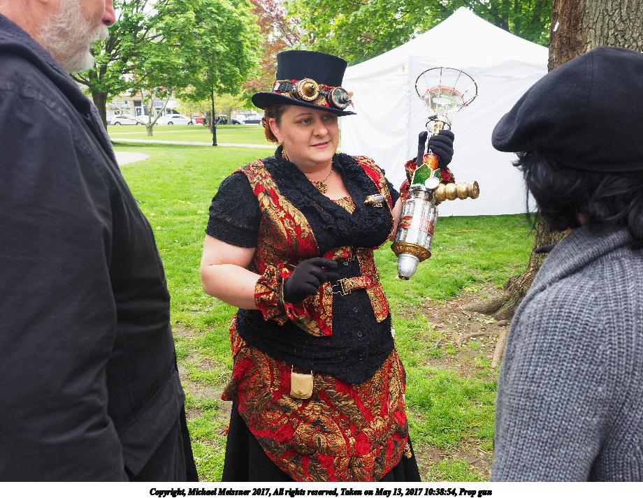 Picture #14: Prop gun Thumb: 460x345, 60,071 bytes (59K) Small: 920x713, 180,101 bytes (176K), (html file) Large: 4600x3450, 4,526,829 bytes (4.3M), (html file) Copyright, Michael Meissner 2017, All rights reserved Olympus E-M1-I camera with Olympus-m43 12-40mm f/2.8 lens f/4.5, ISO 200, 1/160 sec, 17.0mm, auto mode, vivid color, SHQ, matrix metering, IS Auto, noise reduction auto, noise filter low, anti-shock 35mm equivalent focal length 34.0mm Programs used: crop, raw therapee Taken by Michael Meissner on May 13, 2017 10:38:54 Last modified on April 27, 2018 at 23:09 |