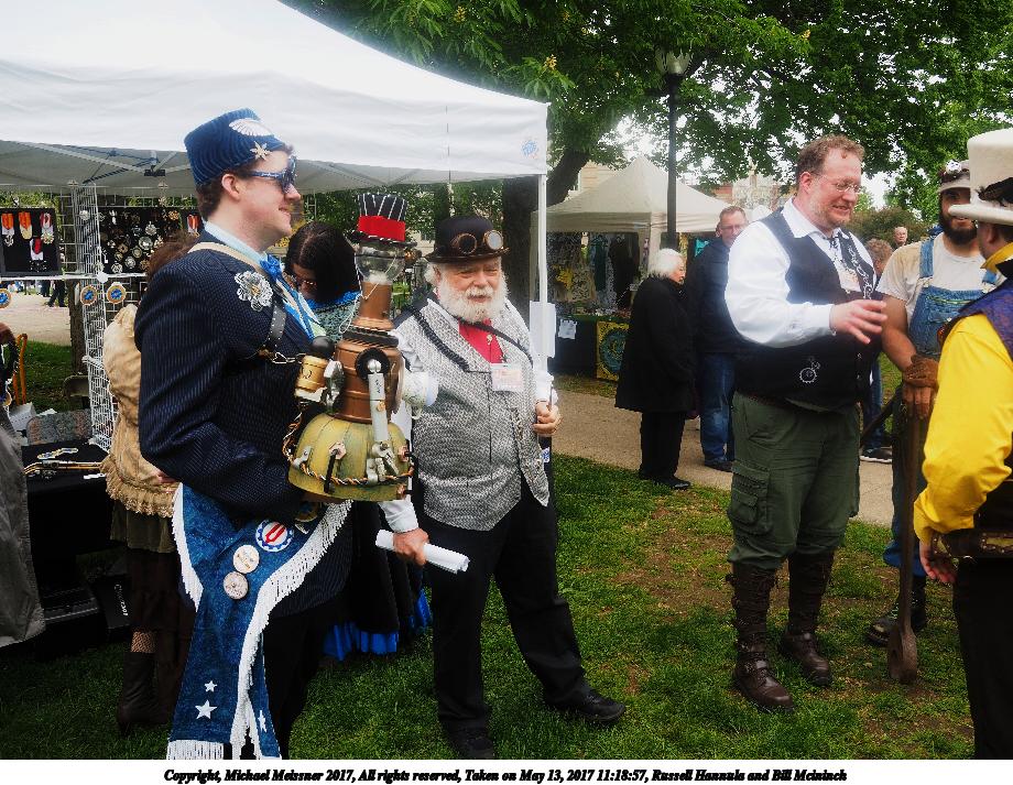 Picture #22: Russell Hannula and Bill Mcininch Thumb: 460x345, 64,131 bytes (63K) Small: 920x713, 191,022 bytes (187K), (html file) Large: 4600x3450, 10,745,742 bytes (11M), (html file) Copyright, Michael Meissner 2017, All rights reserved Olympus E-M1-I camera with Olympus-m43 14-150mm-II f/4.0-5.6 lens f/5.6, ISO 200, 1/125 sec, 15.0mm, auto mode, vivid color, SHQ, matrix metering, IS Auto, noise reduction auto, noise filter low, anti-shock 35mm equivalent focal length 30.0mm Programs used: crop, gimp, raw therapee Taken by Michael Meissner on May 13, 2017 11:18:57 Last modified on April 27, 2018 at 23:09 |