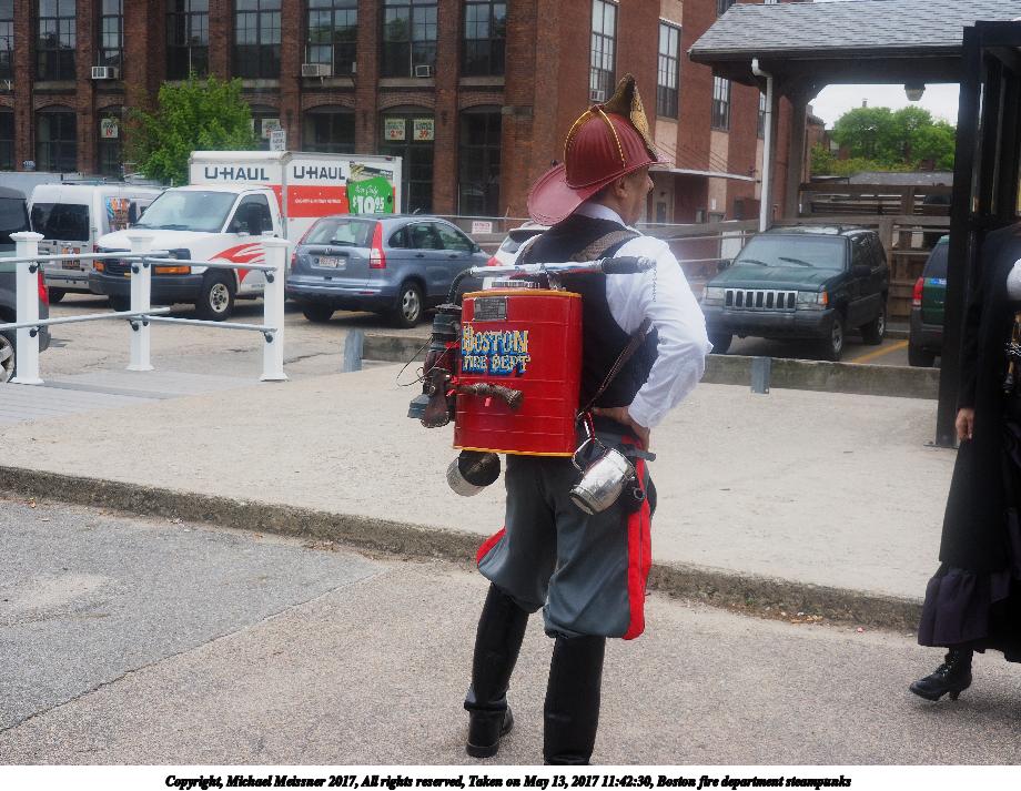 Picture #50: Boston fire department steampunks #2 Thumb: 460x345, 50,931 bytes (50K) Small: 920x713, 149,497 bytes (146K), (html file) Large: 4600x3450, 3,845,498 bytes (3.7M), (html file) Copyright, Michael Meissner 2017, All rights reserved Olympus E-M1-I camera with Olympus-m43 14-150mm-II f/4.0-5.6 lens f/6.3, ISO 200, 1/160 sec, 22.0mm, auto mode, vivid color, SHQ, matrix metering, IS Auto, noise reduction auto, noise filter low, anti-shock 35mm equivalent focal length 44.0mm Programs used: crop, raw therapee Taken by Michael Meissner on May 13, 2017 11:42:30 Last modified on April 27, 2018 at 23:11 |
