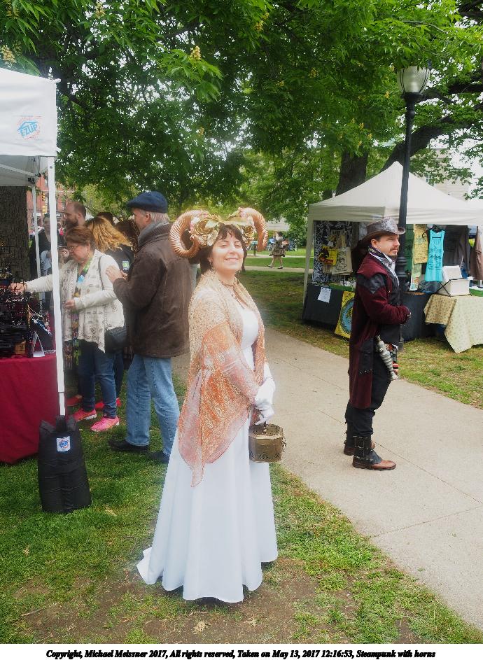 Picture #53: Steampunk with horns Thumb: 345x460, 59,472 bytes (59K) Small: 690x943, 193,160 bytes (189K), (html file) Large: 3450x4600, 4,686,359 bytes (4.5M), (html file) Copyright, Michael Meissner 2017, All rights reserved Olympus E-M1-I camera with Olympus-m43 14-150mm-II f/4.0-5.6 lens f/6.3, ISO 200, 1/160 sec, 14.0mm, auto mode, vivid color, SHQ, matrix metering, IS Auto, noise reduction auto, noise filter low, anti-shock 35mm equivalent focal length 28.0mm Programs used: crop, raw therapee, rotate left Taken by Michael Meissner on May 13, 2017 12:16:53 Last modified on April 27, 2018 at 23:11 |