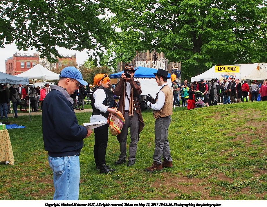 Picture #63: Photographing the photographer #2 Thumb: 460x345, 72,509 bytes (71K) Small: 920x713, 257,006 bytes (251K), (html file) Large: 4600x3450, 5,196,173 bytes (5.0M), (html file) Copyright, Michael Meissner 2017, All rights reserved Olympus E-M5-I camera with Olympus-m43 12-50mm f/3.5-6.3 lens f/5.6, ISO 200, 1/160 sec, 12.0mm, auto mode, vivid color, matrix metering, digital zoom x2, IS1 (All Direction Shake IS), noise filter low 35mm equivalent focal length 48.0mm, digital zoom x2 Programs used: adjusttime, crop, raw therapee Taken by Michael Meissner on May 13, 2017 10:23:36 Last modified on April 27, 2018 at 23:11 |