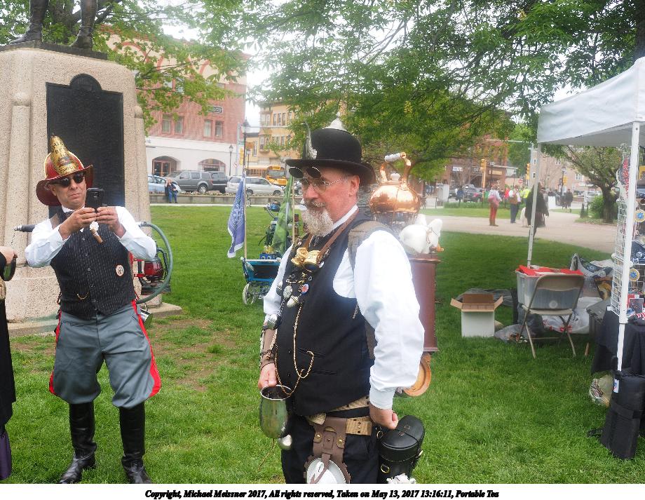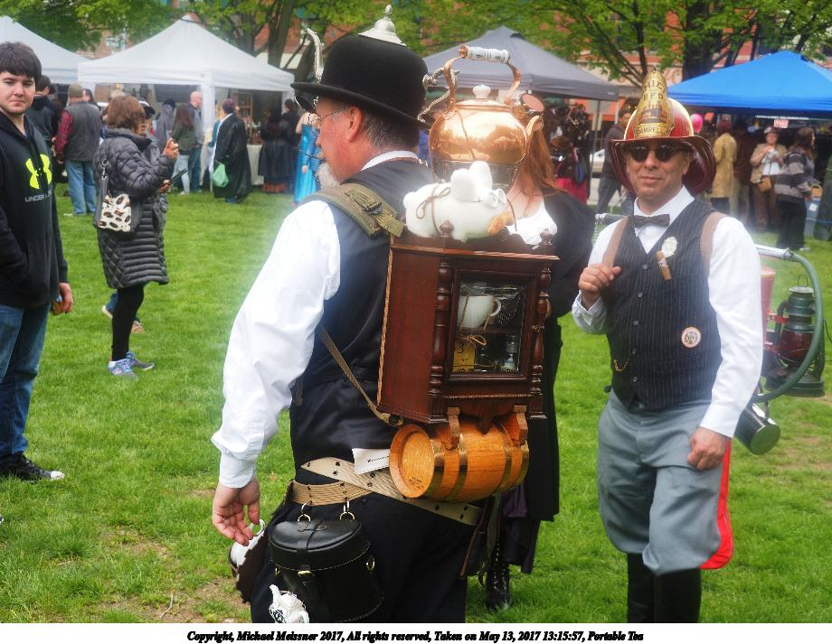 Picture #74: Portable Tea Thumb: 460x345, 63,600 bytes (63K) Small: 920x713, 144,855 bytes (142K), (html file) Large: 4600x3450, 10,953,269 bytes (11M), (html file) Copyright, Michael Meissner 2017, All rights reserved Olympus E-M1-I camera with Olympus-m43 14-150mm-II f/4.0-5.6 lens f/7.1, ISO 200, 1/125 sec, 29.0mm, auto mode, vivid color, SHQ, matrix metering, IS Auto, noise filter low, anti-shock 35mm equivalent focal length 58.0mm Programs used: crop, gimp, raw therapee, rotate right Taken by Michael Meissner on May 13, 2017 13:15:57 Last modified on April 27, 2018 at 23:12 |