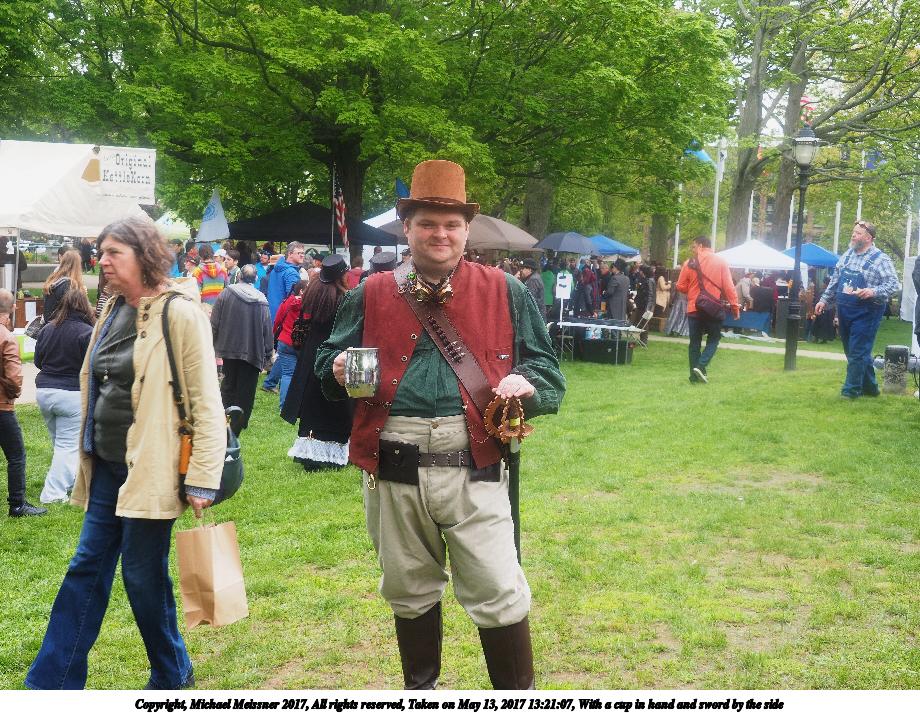 Picture #80: With a cup in hand and sword by the side Thumb: 460x345, 63,612 bytes (63K) Small: 920x713, 201,389 bytes (197K), (html file) Large: 4600x3450, 5,052,301 bytes (4.8M), (html file) Copyright, Michael Meissner 2017, All rights reserved Olympus E-M1-I camera with Olympus-m43 14-150mm-II f/4.0-5.6 lens f/6.3, ISO 200, 1/125 sec, 25.0mm, auto mode, vivid color, SHQ, matrix metering, IS Auto, noise filter low, anti-shock 35mm equivalent focal length 50.0mm Programs used: crop, raw therapee, rotate right Taken by Michael Meissner on May 13, 2017 13:21:07 Last modified on April 27, 2018 at 23:12 |