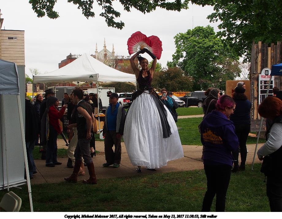 Picture #86: Stilt walker #3 Thumb: 460x345, 50,682 bytes (50K) Small: 920x713, 139,318 bytes (137K), (html file) Large: 4600x3450, 7,060,080 bytes (6.7M), (html file) Copyright, Michael Meissner 2017, All rights reserved Olympus E-M5-I camera with Olympus-m43 12-50mm f/3.5-6.3 lens f/8.0, ISO 200, 1/320 sec, 12.0mm, auto mode, vivid color, matrix metering, digital zoom x2, IS1 (All Direction Shake IS), noise filter low 35mm equivalent focal length 48.0mm, digital zoom x2 Programs used: crop, gimp, raw therapee, rotate right Taken by Michael Meissner on May 13, 2017 11:39:33 Last modified on April 27, 2018 at 23:13 |