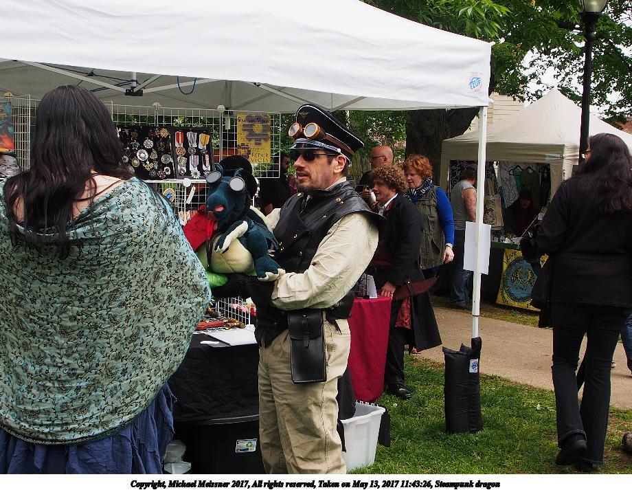 Picture #87: Steampunk dragon Thumb: 460x345, 57,942 bytes (57K) Small: 920x713, 183,356 bytes (180K), (html file) Large: 4600x3450, 3,536,500 bytes (3.4M), (html file) Copyright, Michael Meissner 2017, All rights reserved Olympus E-M5-I camera with Olympus-m43 12-50mm f/3.5-6.3 lens f/6.3, ISO 200, 1/250 sec, 12.0mm, auto mode, vivid color, matrix metering, digital zoom x2, IS1 (All Direction Shake IS), noise filter low 35mm equivalent focal length 48.0mm, digital zoom x2 Programs used: crop, raw therapee, rotate right Taken by Michael Meissner on May 13, 2017 11:43:26 Last modified on April 27, 2018 at 23:13 |