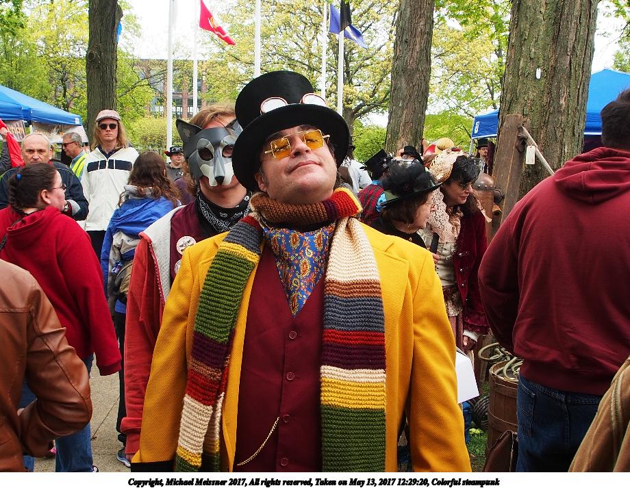 Picture #149: Steampunk parade #5 Thumb: 460x345, 58,499 bytes (58K) Small: 920x713, 181,773 bytes (178K), (html file) Large: 4600x3450, 4,285,311 bytes (4.1M), (html file) Copyright, Michael Meissner 2017, All rights reserved Olympus E-M1-I camera with Olympus-m43 12-40mm f/2.8 lens f/7.1, ISO 200, 1/400 sec, 15.0mm, auto mode, vivid color, SHQ, matrix metering, bias -0.7, IS Auto, noise filter low 35mm equivalent focal length 30.0mm Programs used: crop, raw therapee Taken by Michael Meissner on May 13, 2017 15:38:25 Last modified on April 27, 2018 at 23:16 |