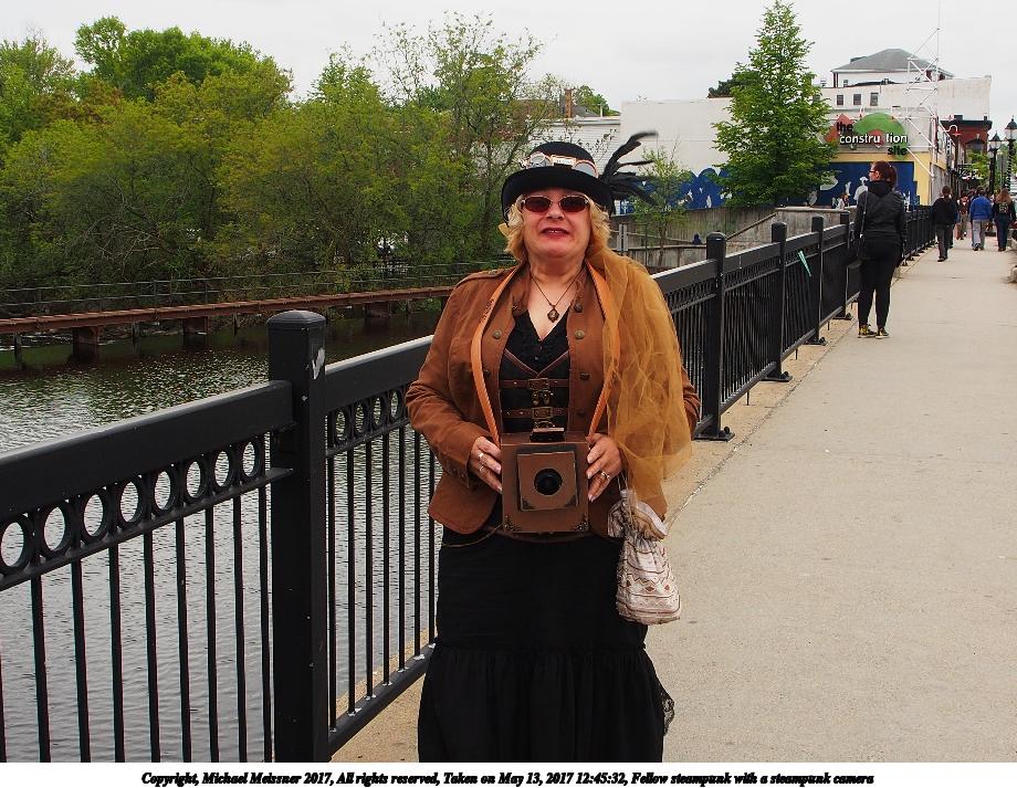 Picture #68: My steampunk camera #2 Thumb: 345x460, 45,194 bytes (45K) Small: 690x943, 117,596 bytes (115K), (html file) Large: 3450x4600, 3,227,831 bytes (3.1M), (html file) Copyright, Michael Meissner 2017, All rights reserved Olympus E-M1-I camera with Olympus-m43 14-150mm-II f/4.0-5.6 lens f/9.0, ISO 200, 1/250 sec, 39.0mm, auto mode, vivid color, SHQ, matrix metering, bias -0.3, IS Auto, noise reduction auto, noise filter low, anti-shock 35mm equivalent focal length 78.0mm Programs used: crop, raw therapee, rotate right Taken by Michael Meissner on May 13, 2017 12:27:47 Last modified on April 27, 2018 at 23:12 |