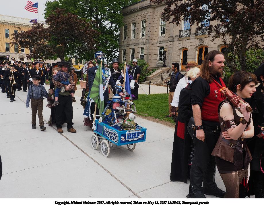 Picture #150: Steampunk parade #6 Thumb: 460x345, 62,094 bytes (61K) Small: 920x713, 200,053 bytes (196K), (html file) Large: 4600x3450, 4,676,090 bytes (4.5M), (html file) Copyright, Michael Meissner 2017, All rights reserved Olympus E-M1-I camera with Olympus-m43 12-40mm f/2.8 lens f/6.3, ISO 200, 1/400 sec, 15.0mm, auto mode, vivid color, SHQ, matrix metering, bias -0.7, IS Auto, noise filter low 35mm equivalent focal length 30.0mm Programs used: crop, raw therapee Taken by Michael Meissner on May 13, 2017 15:38:33 Last modified on April 27, 2018 at 23:16 |