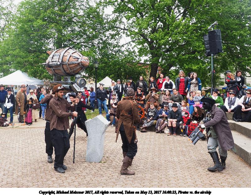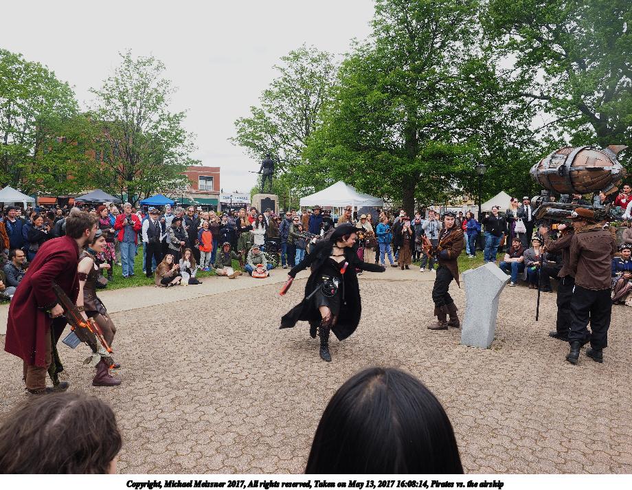 Picture #183: Pirates vs. the airship #2 Thumb: 400x300, 65,664 bytes (65K) Small: 800x623, 215,739 bytes (211K), (html file) Large: 3200x2400, 8,174,852 bytes (7.8M), (html file) Copyright, Michael Meissner 2017, All rights reserved Olympus E-M1-I camera with Olympus-m43 12-40mm f/2.8 lens f/5.6, ISO 200, 1/250 sec, 12.0mm, auto mode, vivid color, SHQ, matrix metering, IS Auto, noise filter low, anti-shock 35mm equivalent focal length 24.0mm Programs used: crop, gimp, raw therapee Taken by Michael Meissner on May 13, 2017 16:08:23 Last modified on April 27, 2018 at 23:18 |
