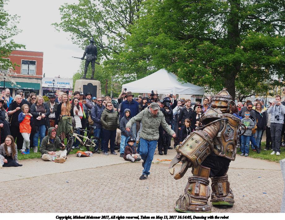 Picture #191: Dancing with the robot Thumb: 460x345, 67,018 bytes (66K) Small: 920x713, 235,963 bytes (231K), (html file) Large: 4600x3450, 5,831,080 bytes (5.6M), (html file) Copyright, Michael Meissner 2017, All rights reserved Olympus E-M1-I camera with Olympus-m43 12-40mm f/2.8 lens f/5.6, ISO 200, 1/250 sec, 27.0mm, auto mode, vivid color, SHQ, matrix metering, IS Auto, noise filter low, anti-shock 35mm equivalent focal length 54.0mm Programs used: crop, raw therapee Taken by Michael Meissner on May 13, 2017 16:14:05 Last modified on April 27, 2018 at 23:18 |