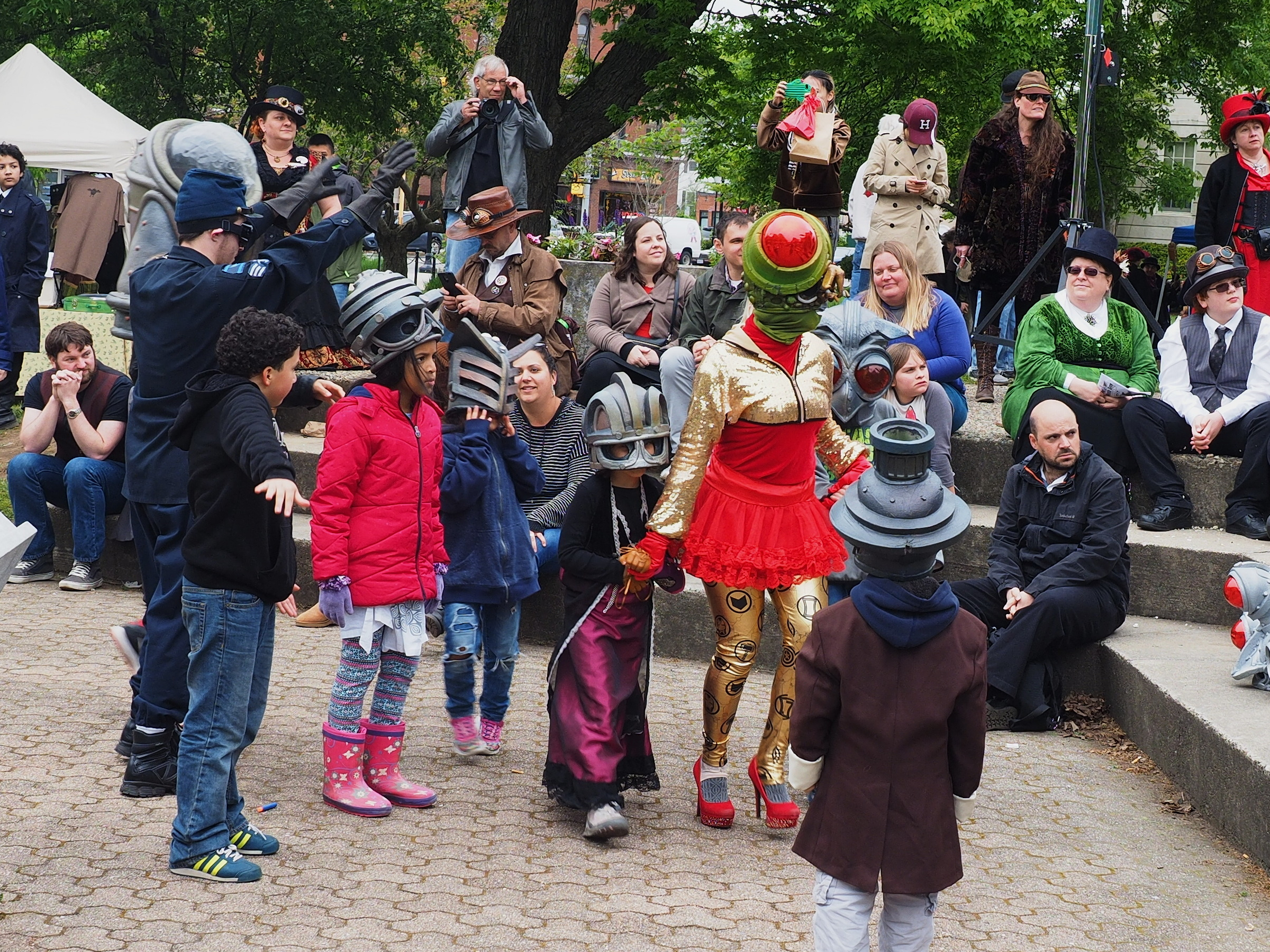 Picture #88: Steampunk parade #12 Small: 920x713, 169,702 bytes (166K), (html file) Large: 4600x3450, 3,920,354 bytes (3.7M), (html file) Copyright, Michael Meissner 2017, All rights reserved Olympus E-M1-I camera with Olympus-m43 12-40mm f/2.8 lens f/6.3, ISO 200, 1/400 sec, 21.0mm, auto mode, vivid color, SHQ, matrix metering, bias -0.7, IS Auto, noise filter low 35mm equivalent focal length 42.0mm Programs used: crop, raw therapee Taken by Michael Meissner on May 13, 2017 15:39:08 Last modified on April 27, 2018 at 23:16 |