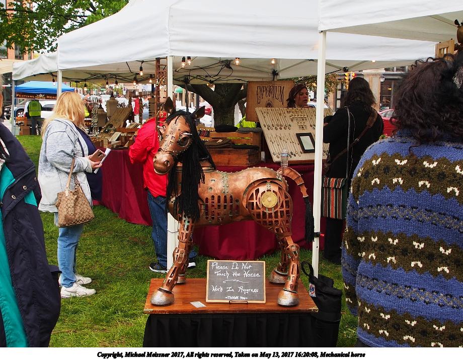 Picture #1: Mechanical horse Small: 920x713, 179,859 bytes (176K), (html file) Large: 4600x3450, 3,475,929 bytes (3.3M), (html file) Copyright, Michael Meissner 2017, All rights reserved Olympus E-M5-I camera with Olympus-m43 12-50mm f/3.5-6.3 lens f/4.0, ISO 200, 1/100 sec, 12.0mm, auto mode, vivid color, matrix metering, digital zoom x2, IS1 (All Direction Shake IS), noise filter low 35mm equivalent focal length 48.0mm, digital zoom x2 Programs used: adjusttime, crop, raw therapee Taken by Michael Meissner on May 13, 2017 16:20:08 Last modified on April 27, 2018 at 23:21 |