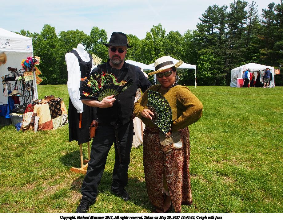 Picture #17: Couple with fans Small: 920x713, 232,195 bytes (227K), (html file) Large: 4600x3450, 6,279,381 bytes (6.0M), (html file) Copyright, Michael Meissner 2017, All rights reserved Olympus E-M5-I camera with Olympus-m43 12-50mm f/3.5-6.3 lens f/7.1, ISO 200, 1/320 sec, 13.0mm, auto mode, vivid color, matrix metering, IS1 (All Direction Shake IS), noise filter low 35mm equivalent focal length 26.0mm Programs used: crop, raw therapee Taken by Michael Meissner on May 28, 2017 12:43:23 Last modified on April 27, 2018 at 22:57 |