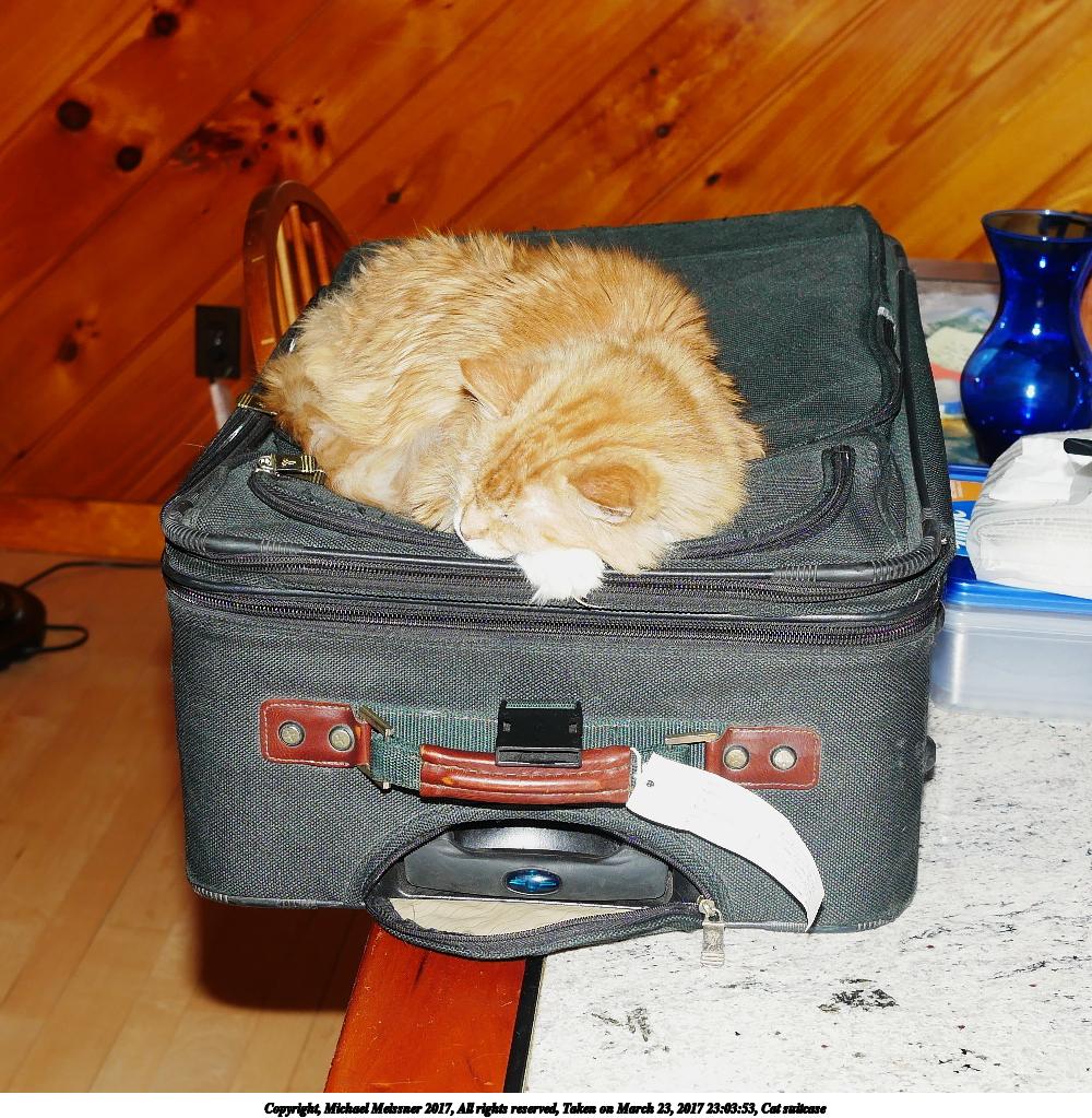 Picture #2: Cat suitcase 1000x1023, 248,533 bytes (243K), (html file) Copyright, Michael Meissner 2017, All rights reserved Panasonic G85 camera with Olympus-m43 12-40mm f/2.8 lens f/2.8, ISO 200, flash, 1/60 sec, 18.0mm, auto mode, auto wb (6100), matrix metering, image stabilization 35mm equivalent focal length 36.0mm Programs used: crop, gimp, raw therapee Taken by Michael Meissner on March 23, 2017 23:03:53 Last modified on April 28, 2018 at 10:42 |