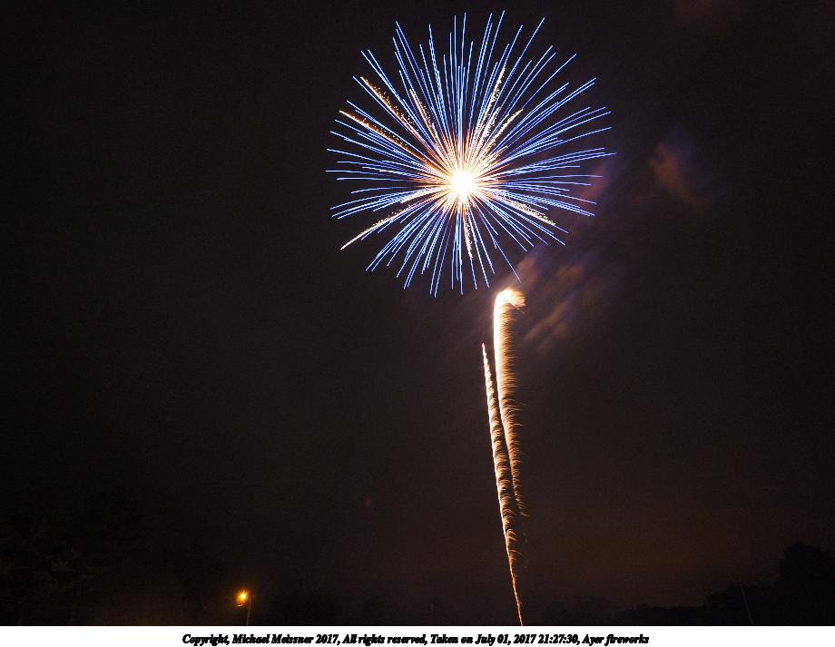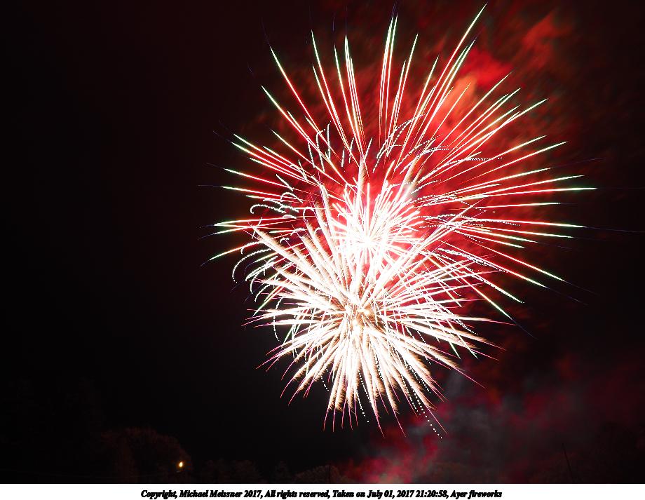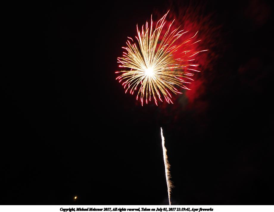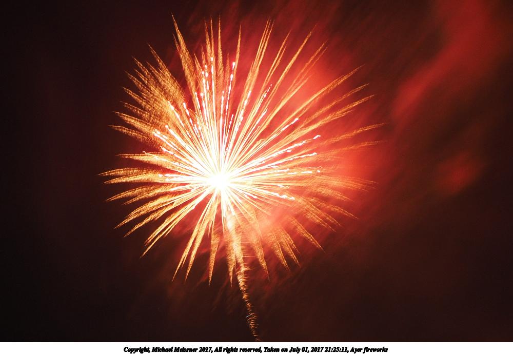 Picture #69: Ayer fireworks #2 920x713, 107,635 bytes (106K), (html file) Copyright, Michael Meissner 2017, All rights reserved Olympus E-M1-I camera with Olympus-m43 12-40mm f/2.8 lens f/5.6, ISO 200, 3 sec, 12.0mm, manual mode, vivid color, SHQ, center weight metering, manual focus, noise reduction, noise filter low, live composite, right eye priority 35mm equivalent focal length 24.0mm Taken by Michael Meissner on July 01, 2017 21:19:57 Last modified on April 27, 2018 at 11:00 |