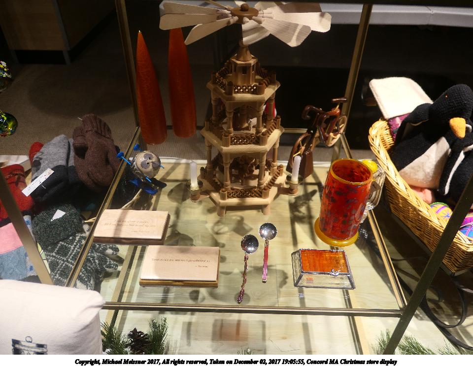 Picture #6: Concord MA Christmas store display #5 Thumb: 480x360, 66,423 bytes (65K) Small: 960x743, 151,666 bytes (149K), (html file) Copyright, Michael Meissner 2017, All rights reserved Panasonic LX-10 camera f/1.4, ISO 125, 1/100 sec, 8.8mm, auto mode, auto wb (3400), matrix metering, image stabilization 35mm equivalent focal length 26.0mm Programs used: crop Taken by Michael Meissner on December 02, 2017 19:06:46 Last modified on April 25, 2018 at 10:03 |
