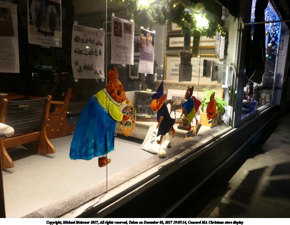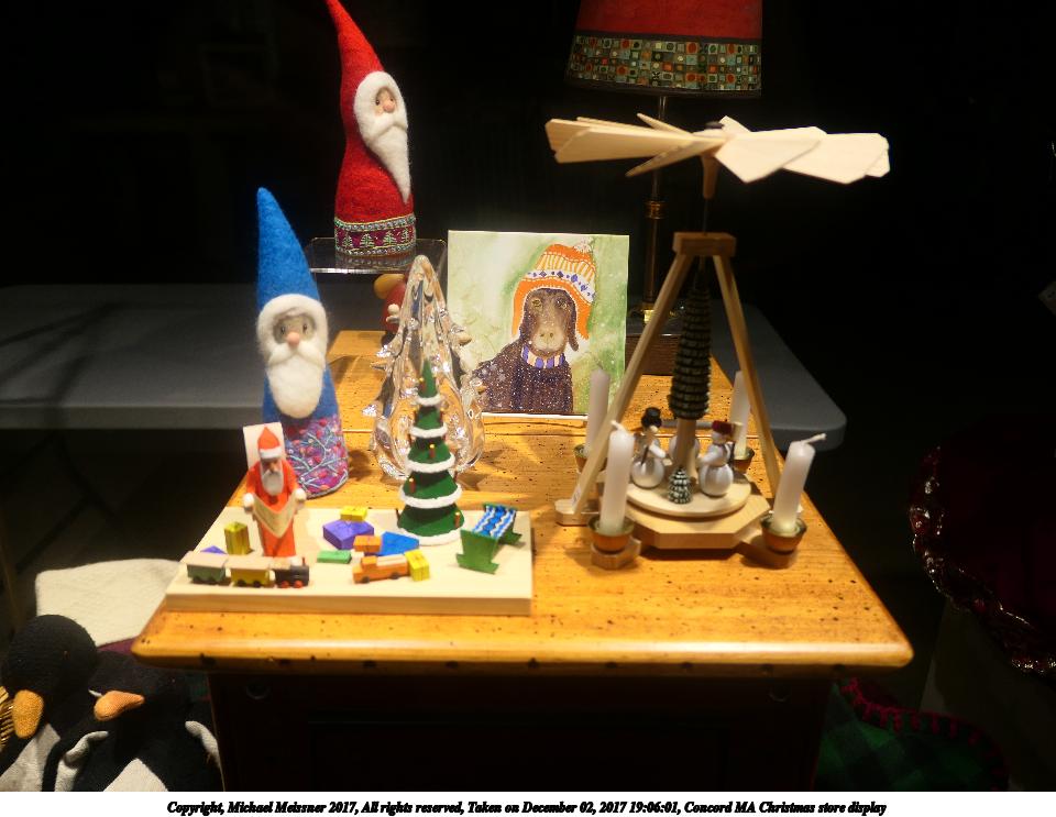 Picture #8: Concord MA Christmas store display #7 Thumb: 480x360, 65,622 bytes (65K) Small: 960x743, 151,700 bytes (149K), (html file) Copyright, Michael Meissner 2017, All rights reserved Panasonic LX-10 camera f/1.8, ISO 125, 1/125 sec, 8.8mm, auto mode, auto wb (3200), matrix metering, image stabilization 35mm equivalent focal length 26.0mm Programs used: crop Taken by Michael Meissner on December 02, 2017 19:08:45 Last modified on April 25, 2018 at 10:03 |