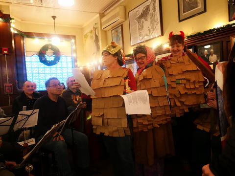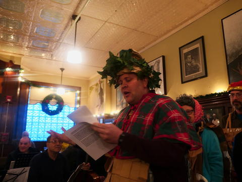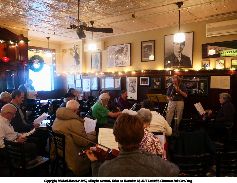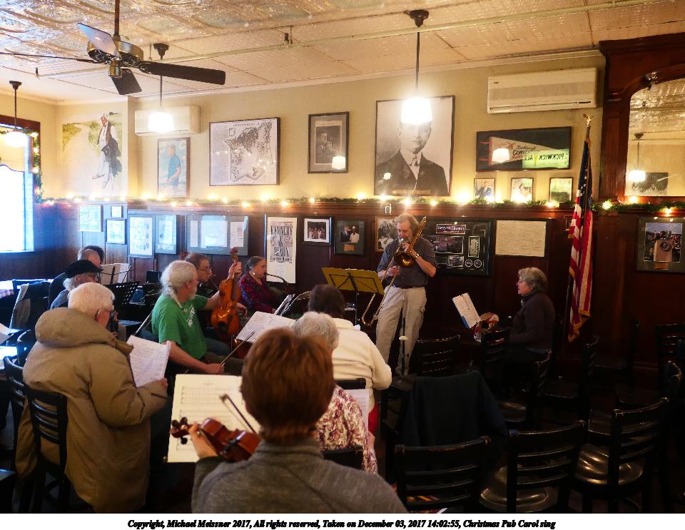 Picture #3: Christmas Pub Carol sing #3 Thumb: 480x360, 69,364 bytes (68K) Small: 960x743, 142,804 bytes (140K), (html file) Copyright, Michael Meissner 2017, All rights reserved Panasonic LX-10 camera f/1.4, ISO 640, 1/60 sec, 8.8mm, auto mode, auto wb (3200), matrix metering, image stabilization 35mm equivalent focal length 26.0mm Programs used: crop, raw therapee Taken by Michael Meissner on December 03, 2017 14:51:45 Last modified on April 25, 2018 at 10:05 |