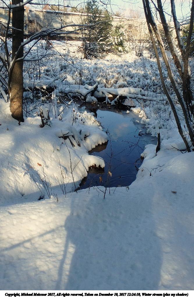 Picture #5: Winter stream (plus my shadow) Thumb: 333x500, 53,068 bytes (52K) Small: 667x1023, 182,656 bytes (179K), (html file) Copyright, Michael Meissner 2017, All rights reserved Olympus TG-860 camera f/3.5, ISO 125, 1/640 sec, 3.7mm, auto mode, natural color, SQ, matrix metering 35mm equivalent focal length 21.0mm Programs used: crop, raw therapee Taken by Michael Meissner on December 10, 2017 12:24:10 Last modified on April 25, 2018 at 10:06 |