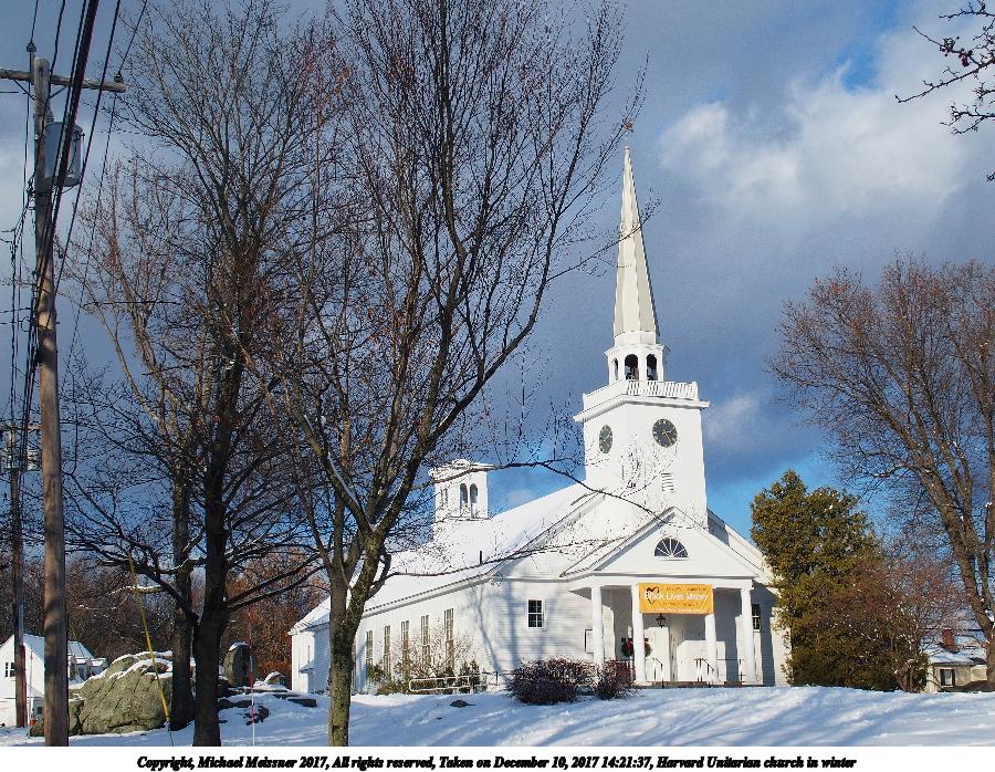 Picture #20: Harvard Unitarian church in winter Thumb: 450x338, 60,590 bytes (60K) Small: 900x698, 224,029 bytes (219K), (html file) Copyright, Michael Meissner 2017, All rights reserved Olympus Stylus-1 camera f/4.5, ISO 100, 1/800 sec, 9.8mm, auto mode, vivid color, SHQ, matrix metering, IS Auto, noise reduction auto, noise filter low 35mm equivalent focal length 46.0mm Programs used: crop, raw therapee Taken by Michael Meissner on December 10, 2017 14:21:37 Last modified on April 25, 2018 at 10:07 |