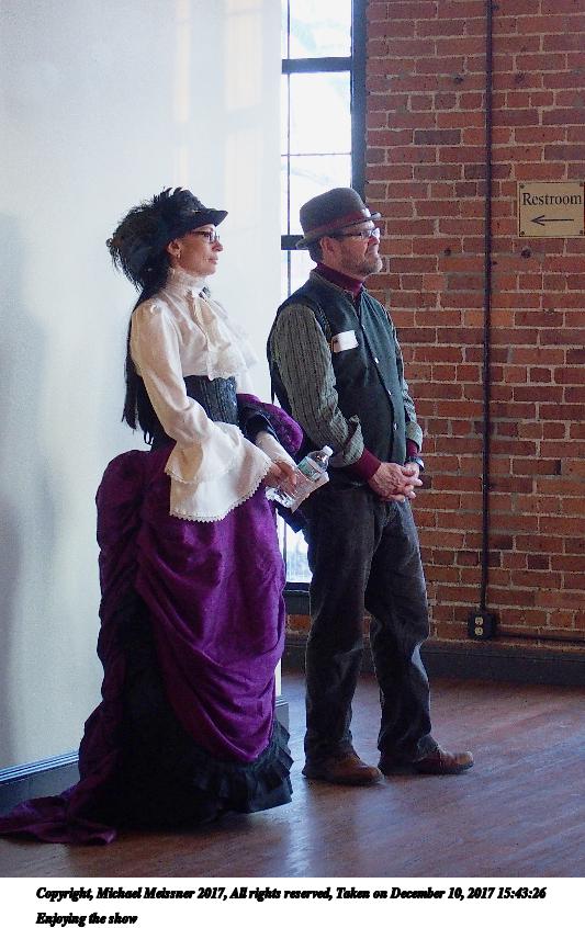 Picture #4: Enjoying the show Thumb: 320x480, 48,170 bytes (48K) Small: 533x846, 94,302 bytes (93K), (html file) Copyright, Michael Meissner 2017, All rights reserved Olympus Stylus-1 camera f/2.8, ISO 400, 1/60 sec, 14.5mm, auto mode, vivid color, SHQ, matrix metering, IS Auto, noise reduction auto, noise filter low 35mm equivalent focal length 70.0mm Programs used: crop, gimp, raw therapee Taken by Michael Meissner on December 10, 2017 15:43:26 Last modified on April 25, 2018 at 10:07 |