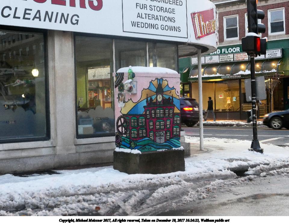 Picture #25: Waltham public art Thumb: 480x360, 77,789 bytes (76K) Small: 960x743, 170,017 bytes (167K), (html file) Copyright, Michael Meissner 2017, All rights reserved Panasonic LX-10 camera f/2.8, ISO 1600, 1/60 sec, 21.3mm, auto mode, auto wb (8400), matrix metering, bias -0.3, image stabilization 35mm equivalent focal length 63.0mm Programs used: crop, gimp, raw therapee Taken by Michael Meissner on December 10, 2017 16:24:23 Last modified on April 25, 2018 at 10:07 |