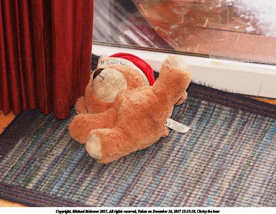 Picture #5: Chrisy the bear Thumb: 460x345, 57,885 bytes (57K) Small: 920x713, 176,853 bytes (173K), (html file) Copyright, Michael Meissner 2017, All rights reserved Olympus E-M1-I camera with Olympus-m43 12-40mm f/2.8 lens f/2.8, ISO 200, FL-36R flash (+0.33 flash compensation), 1/60 sec, 38.0mm, auto mode, vivid color, SHQ, flash (5500K), matrix metering, digital zoom x2, IS Auto, noise filter low, anti-shock 35mm equivalent focal length 152.0mm, digital zoom x2 Programs used: crop, raw therapee Taken by Michael Meissner on December 16, 2017 15:15:18 Last modified on April 25, 2018 at 10:04 |