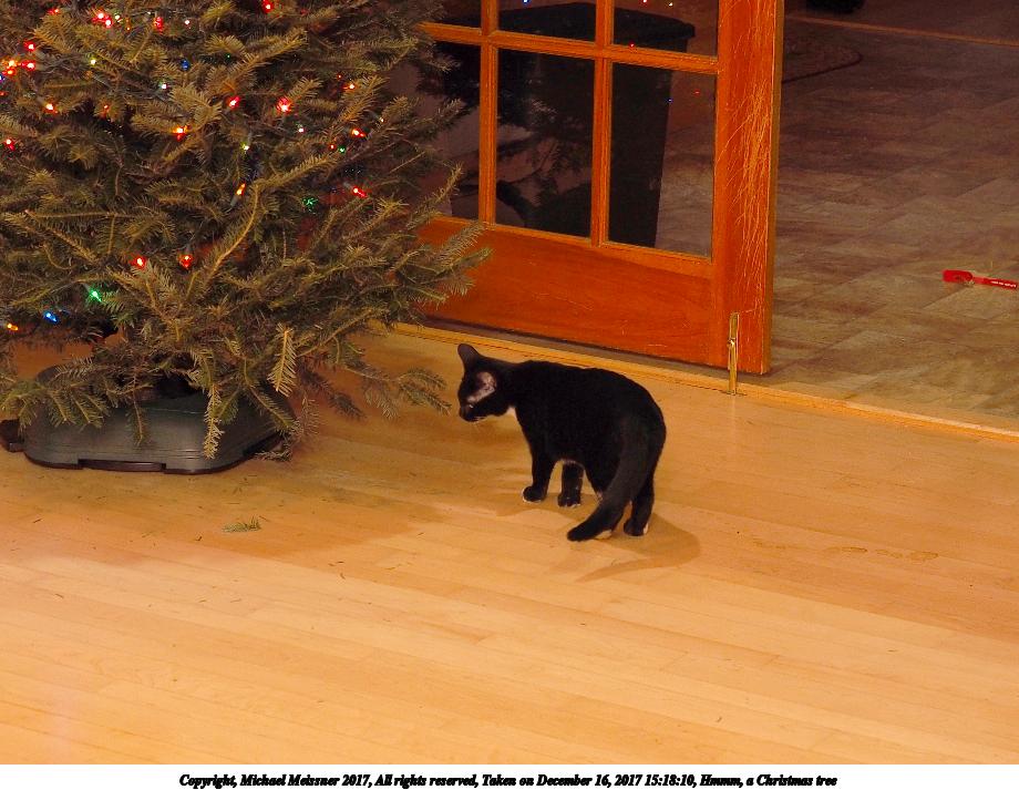 Picture #12: Hmmm, a Christmas tree Thumb: 460x345, 44,357 bytes (44K) Small: 920x713, 113,541 bytes (111K), (html file) Copyright, Michael Meissner 2017, All rights reserved Olympus E-M1-I camera with Olympus-m43 12-40mm f/2.8 lens f/2.8, ISO 200, FL-36R flash (+0.33 flash compensation), 1/60 sec, 26.0mm, auto mode, vivid color, SHQ, flash (5500K), matrix metering, digital zoom x2, IS Auto, noise filter low, anti-shock 35mm equivalent focal length 104.0mm, digital zoom x2 Programs used: crop, gimp Taken by Michael Meissner on December 16, 2017 15:17:55 Last modified on April 25, 2018 at 10:03 |