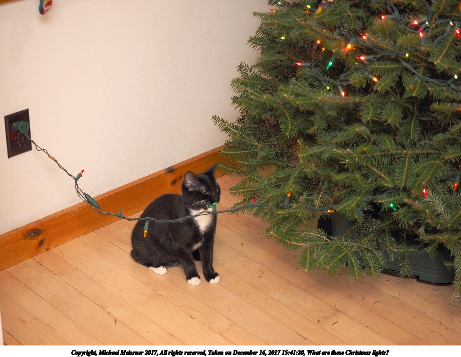 Picture #25: What are these Christmas lights? #3 Thumb: 460x345, 49,401 bytes (49K) Small: 920x713, 121,158 bytes (119K), (html file) Copyright, Michael Meissner 2017, All rights reserved Olympus E-M1-I camera with Olympus-m43 12-40mm f/2.8 lens f/2.8, ISO 200, FL-36R flash (+0.33 flash compensation), 1/60 sec, 40.0mm, auto mode, vivid color, SHQ, flash (5500K), matrix metering, IS Auto, noise filter low, anti-shock 35mm equivalent focal length 80.0mm Programs used: crop, gimp Taken by Michael Meissner on December 16, 2017 15:41:20 Last modified on April 25, 2018 at 10:04 |