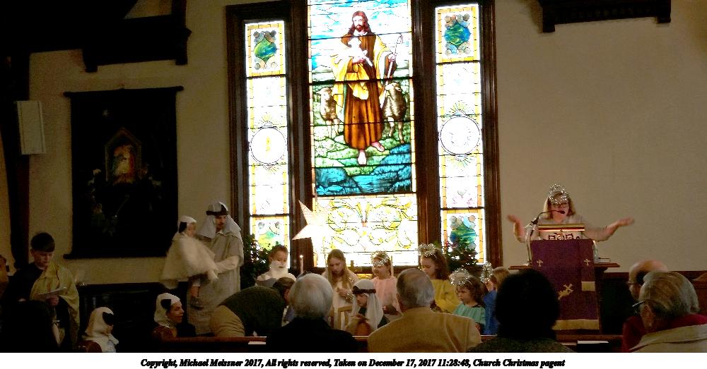 Picture #27: Church Christmas pagent Thumb: 500x250, 34,417 bytes (34K) Small: 1000x523, 94,114 bytes (92K), (html file) Copyright, Michael Meissner 2017, All rights reserved Samsung S5 phone f/2.2, ISO 50, flash, 1/30 sec, 4.8mm, auto mode, center weight metering 35mm equivalent focal length 31.0mm Programs used: gimp Taken by Michael Meissner on December 17, 2017 11:28:48 Last modified on April 25, 2018 at 10:04 |