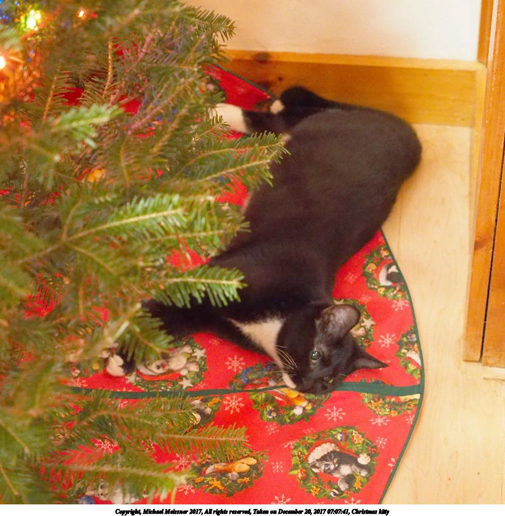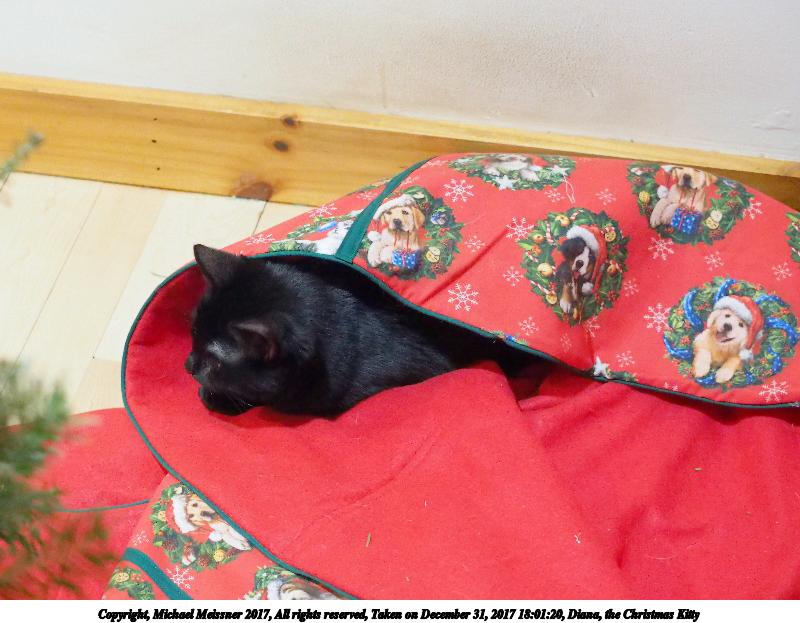 Picture #12: Diana, the Christmas Kitty #3 Thumb: 400x300, 43,777 bytes (43K) Small: 800x623, 96,187 bytes (94K), (html file) Copyright, Michael Meissner 2017, All rights reserved Olympus E-M1-I camera with Olympus-m43 12-40mm f/2.8 lens f/2.8, ISO 320, flash (+0.33 flash compensation), 1/60 sec, 40.0mm, auto mode, vivid color, SHQ, flash (5500K), matrix metering, IS Auto, noise filter low, anti-shock 35mm equivalent focal length 80.0mm Programs used: crop, gimp Taken by Michael Meissner on December 31, 2017 18:01:35 Last modified on April 25, 2018 at 10:51 This picture is one of my favorites. |