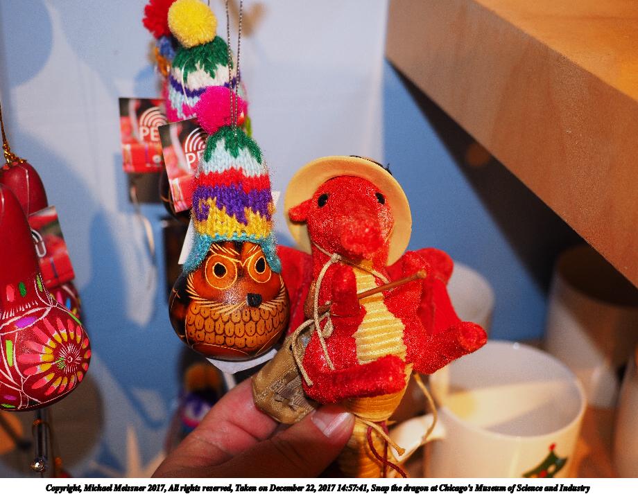 Picture #2: Snap the dragon at Chicago's Museum of Science and Industry #2 Thumb: 460x345, 48,551 bytes (48K) Small: 920x713, 124,271 bytes (122K), (html file) Copyright, Michael Meissner 2017, All rights reserved Olympus E-M1-I camera with Olympus-m43 12-40mm f/2.8 lens f/2.8, ISO 200, flash (+0.33 flash compensation), 1/60 sec, 24.0mm, auto mode, vivid color, SHQ, flash (5500K), matrix metering, IS Auto, noise filter low, anti-shock 35mm equivalent focal length 48.0mm Programs used: adjusttime, crop, raw therapee Taken by Michael Meissner on December 22, 2017 14:57:41 Last modified on April 25, 2018 at 10:08 |