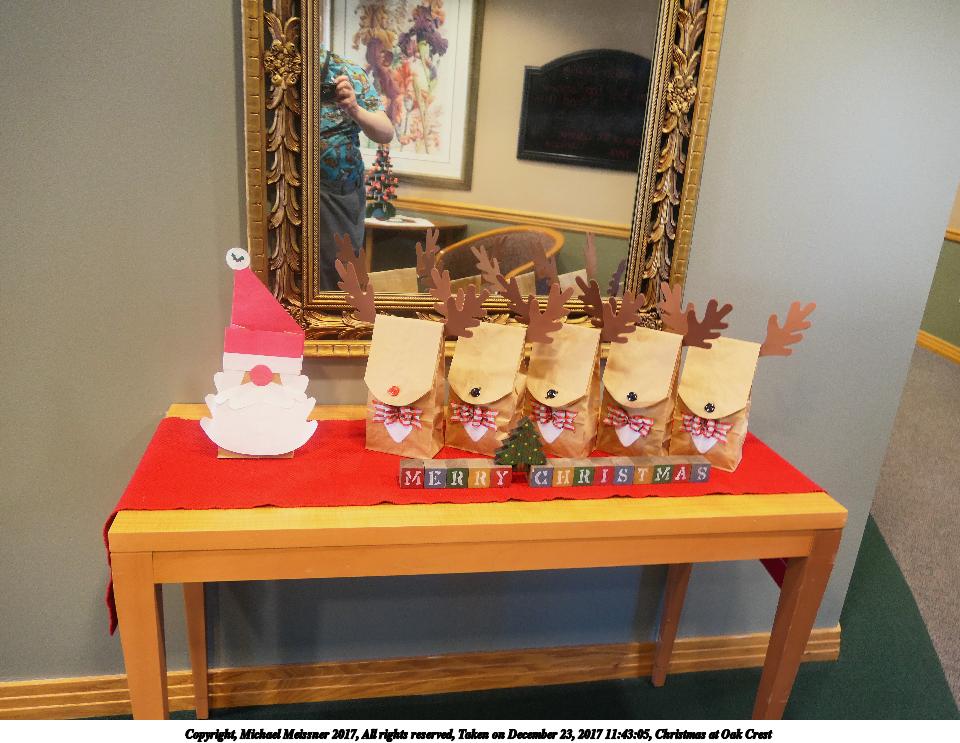 Picture #12: Christmas at Oak Crest #11 Thumb: 480x360, 65,948 bytes (65K) Small: 960x743, 161,397 bytes (158K), (html file) Copyright, Michael Meissner 2017, All rights reserved Panasonic LX-10 camera f/1.4, ISO 160, 1/60 sec, 8.8mm, auto mode, auto wb (5900), matrix metering, bias -0.7, image stabilization 35mm equivalent focal length 26.0mm Programs used: adjusttime, crop, raw therapee Taken by Michael Meissner on December 23, 2017 11:46:30 Last modified on April 25, 2018 at 10:08 |