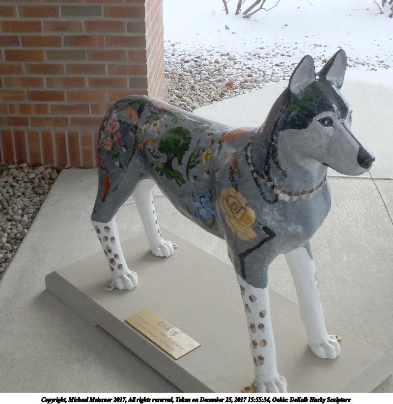 Picture #2: Oakie: DeKalb Husky Sculpture #2 Thumb: 400x400, 38,087 bytes (38K) Small: 800x823, 98,736 bytes (97K), (html file) Copyright, Michael Meissner 2017, All rights reserved Olympus TG-860 camera f/5.1, ISO 160, 1/80 sec, 6.9mm, auto mode, natural color, SQ, matrix metering 35mm equivalent focal length 39.0mm Programs used: adjusttime, crop, gimp Taken by Michael Meissner on December 25, 2017 15:55:34 Last modified on April 25, 2018 at 10:07 |