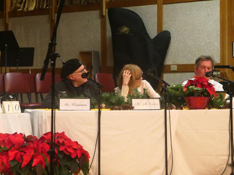 Picture #4: Says You radio show taping #4 Thumb: 450x225, 60,368 bytes (59K) Small: 900x473, 104,841 bytes (103K), (html file) Copyright, Michael Meissner 2017, All rights reserved Panasonic LX-10 camera f/2.8, ISO 1600, 1/40 sec, 24.5mm, auto mode, auto wb (2900), matrix metering, bias 0.3, image stabilization 35mm equivalent focal length 73.0mm Programs used: gimp Taken by Michael Meissner on December 02, 2017 17:54:26 Last modified on April 25, 2018 at 10:04 |