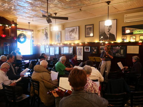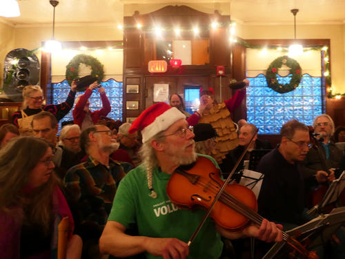 Picture #15: Christmas Pub Carol sing #4 Thumb: 500x375, 73,474 bytes (72K) Small: 1000x773, 131,473 bytes (129K), (html file) Copyright, Michael Meissner 2017, All rights reserved Panasonic LX-10 camera f/1.4, ISO 800, 1/60 sec, 8.8mm, auto mode, auto wb (3200), matrix metering, image stabilization 35mm equivalent focal length 26.0mm Programs used: crop, gimp, raw therapee Taken by Michael Meissner on December 03, 2017 16:19:57 Last modified on April 25, 2018 at 10:06 |