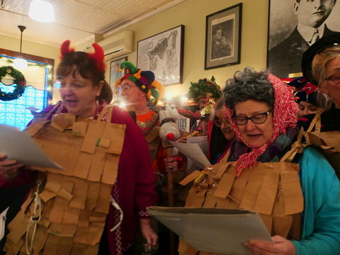 Picture #2: Christmas Pub Carol sing #2 Thumb: 480x360, 71,436 bytes (70K) Small: 960x743, 156,090 bytes (153K), (html file) Copyright, Michael Meissner 2017, All rights reserved Panasonic LX-10 camera f/1.4, ISO 400, 1/60 sec, 8.8mm, auto mode, auto wb (3300), matrix metering, image stabilization 35mm equivalent focal length 26.0mm Programs used: crop, raw therapee Taken by Michael Meissner on December 03, 2017 14:02:59 Last modified on April 25, 2018 at 10:05 |