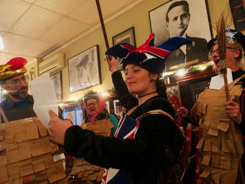 Picture #13: Paper bag mummers #10 Thumb: 480x360, 68,739 bytes (68K) Small: 960x743, 146,020 bytes (143K), (html file) Copyright, Michael Meissner 2017, All rights reserved Panasonic LX-10 camera f/1.4, ISO 640, 1/60 sec, 8.8mm, auto mode, auto wb (2800), matrix metering, image stabilization 35mm equivalent focal length 26.0mm Programs used: crop, raw therapee Taken by Michael Meissner on December 03, 2017 16:03:09 Last modified on April 25, 2018 at 10:06 |