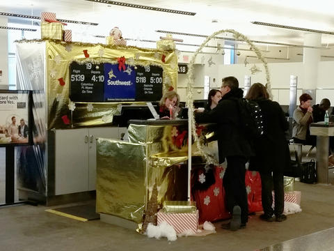 Picture #29: Southwest Airlines Christmas gate #2 Thumb: 500x333, 44,075 bytes (44K) Small: 1000x690, 135,355 bytes (133K), (html file) Copyright, Michael Meissner 2017, All rights reserved Samsung S5 phone f/2.2, ISO 200, flash, 1/30 sec, 4.8mm, auto mode, center weight metering 35mm equivalent focal length 31.0mm Programs used: gimp, raw therapee Taken by Michael Meissner on December 21, 2017 16:04:09 Last modified on April 25, 2018 at 10:04 |